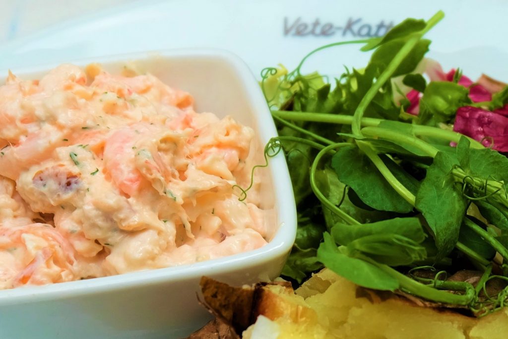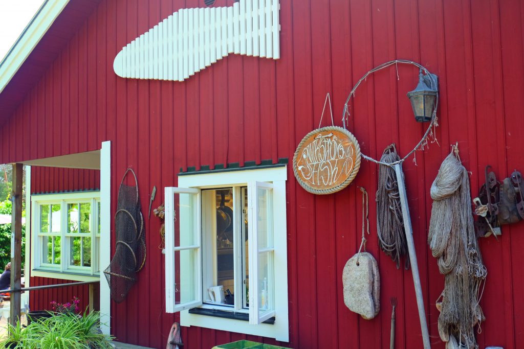 Ein paar Meter mit dem Traktor zurückgelegt und schon erreichen wir das Restaurant „Wikströms Fisk“. Hier werden wir mit einem freundlichen „Välkommen“ erwartet und unser Tisch ist bereits mit Blumen und einer kleinen Schweden-Flagge geschmückt.