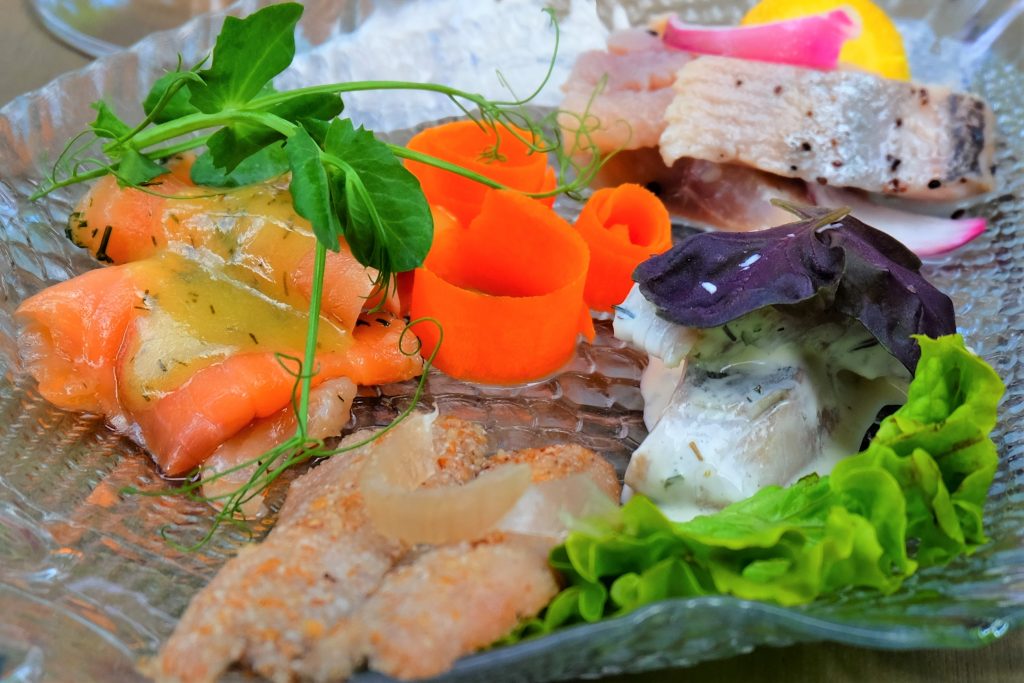 Die hervorragende Vorspeise „Stinas Småplock“ und den vorzüglichen Hauptgang „Stekt Abborre“ lassen wir uns auf der Zunge zergehen und würden am liebsten noch ’ne Portion im Henkelmännchen mitnehmen.