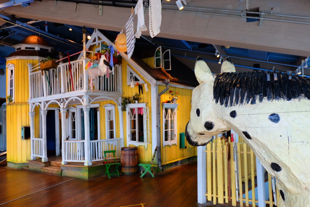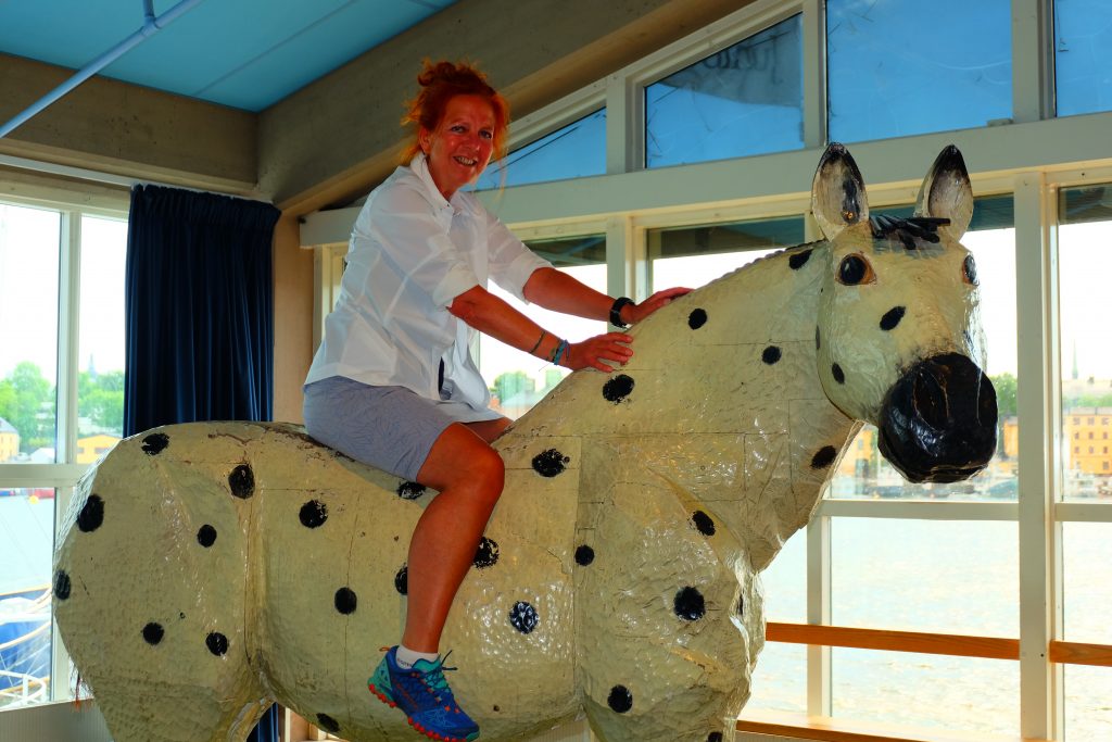 Und dann erreichen wir „Junibacken“. Ein Museum der besonderen Art. Ein Museum für Besucher zwischen 6 und 99 Jahren. Ein Museum über die Protagonisten von Astrid Lindgren. Ein Museum, das uns sofort mehr als 50 Jahre durch den Timetunnel zurücksausen lässt. Wir treffen auf alte Bekannte: Michel aus Lönneberga, Ronja Räubertochter – für die wir seinerzeit natürlich schon zu alt waren, dann aber mein perönlicher Favorit: Karlsson auf dem Dach – wie oft hätte ich schon mal seinen Propeller gebraucht – und natürlich Martina’s Favoritin: Pippilotta Viktualia Rollgardina Pfefferminz Efraimstochter Langstrumpf. „2 x 3 macht 4, Widdewiddewitt und Drei macht Neune !!, Ich mach‘ mir die Welt, Widdewidde wie sie mir gefällt“ … Ähnlichkeiten sind hier nicht ausgeschlossen 😉