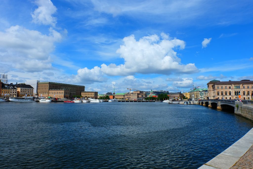 Wir sind in Blasieholmen und der Insel Skeppsholmen unterwegs. Und da ist die Skeppsholmsbron mit ihren auf jeder Seite platzierten goldenen Königskronen wohl die beste und schönste Verbindung.