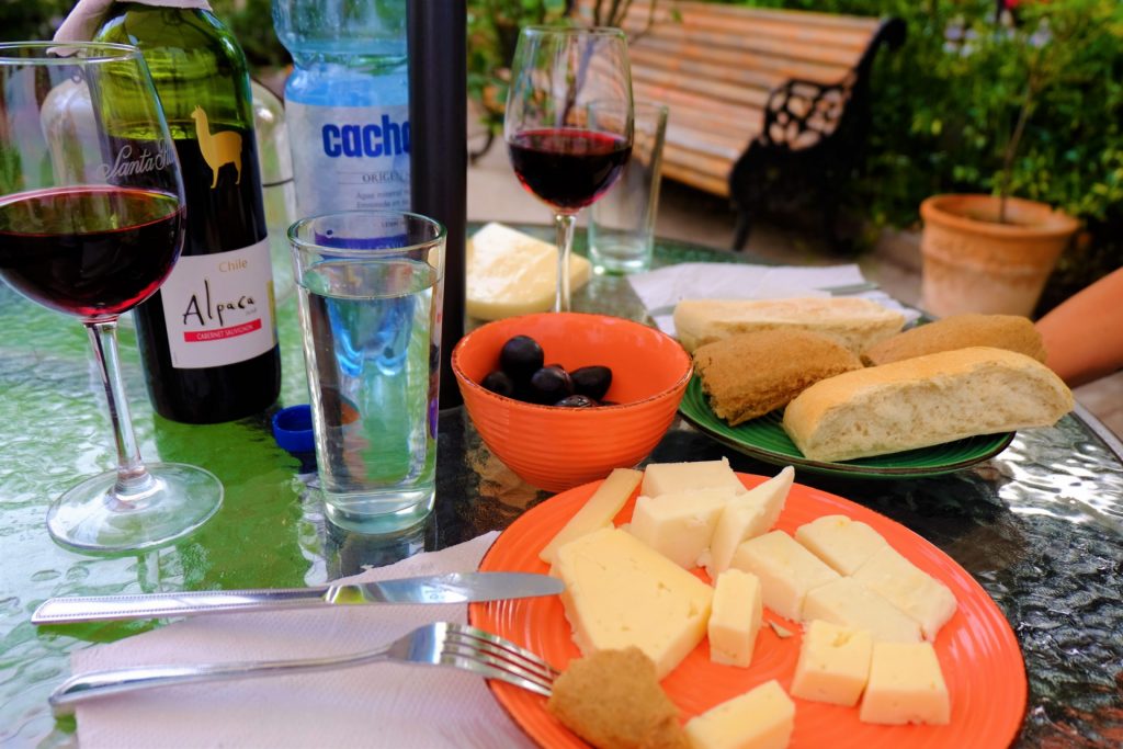 Mit etwas Verspätung landen wir Montag morgens um 9:15 Uhr Ortszeit in Santiago de Chile. „Das ist jetzt für ein halbes Jahr unser zuhause“, sagt Martina, während wir zum ersten mal den südamerikanischen Kontinent betreten. Nachdem wir unser Zimmer im Hotel „De Blasis“ bezogen haben, machen wir uns direkt auf, um die nähere Umgebung zu erkunden. Noch nie haben wir soviele Chilenen auf einmal gesehen … 😉 5,3 Millionen leben in der Hauptstadt und die meisten von ihnen tragen keine „Arturo Vidal Frisur“, dafür aber entspannte Frühjahrskleidung. Wir sind bereits „am dämpen“, da das Thermometer 27 Grad anzeigt und die Sonne bei blauem Himmel freie Bahn hat. Hinzu kommen lediglich 20% Luftfeuchtigkeit – ist der Begriff dann überhaupt noch passend? Also schnell die Terrasse eines Bistros aufsuchen und ein eiskaltes Austral zischen. Na gut, zwei gehen auch und dabei kommt der Appetit auf etwas „herzhaftes“. Abends gibt’s dann nur noch ein kleines Mitternachtsgedeck auf der Terrasse und dann heißt es „buenas noches“.