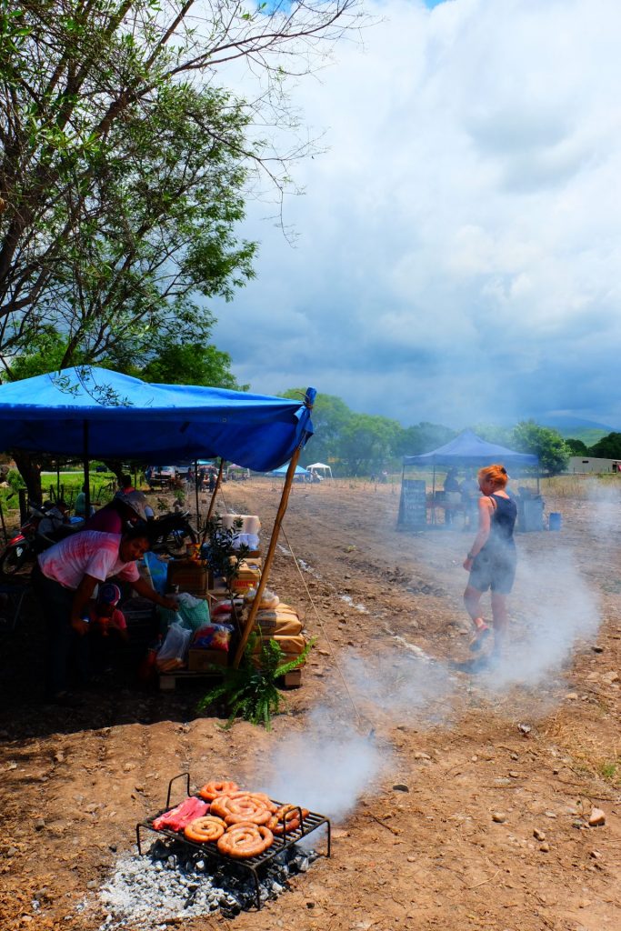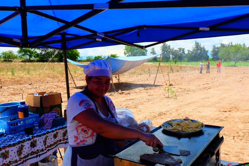 Wir machen uns auf den Weg nach Salta. Als wir gegen Mittag auf einem ländlichen Teilstück der RN 9 unterwegs sind, sagt Martina: „Da qualmt ein Grill auf dem Feld. Da gibt`s bestimmt was zu essen für uns.“ Wir halten an und betreten den Acker. Wir werden freudig begrüßt und sogar fotografiert. Nicht, weil wir heute so umwerfend aussehen, sondern weil wir wohl die bisher einzigen Extranjeros sind, die die Feria der Bauern des Pueblos „El Carmen“ jemals besucht haben. Kurze Zeit später verspeisen wir je ein fein gegrilltes Kalbsfilet, welches auf Salat und zwischen zwei Baguettehälften serviert wird. Dunkle und schwere Wolken begleiten uns bei der weiteren Anreise in der Hauptstadt der gleichnamigen Provinz. Über 520.000 Menschen leben hier. Wir nehmen ein Zimmer in einer kleinen Pension, da campen in der Fußgängerzone hier nicht so gerne gesehen wird… Es ist mit fast 30 Grad schwül-heiß. Die Luft steht und dampft. Die entsprechende Abkühlung ist nicht weit.