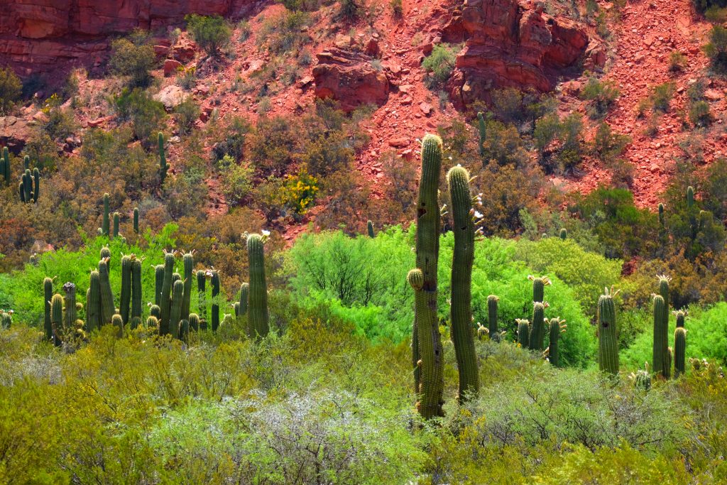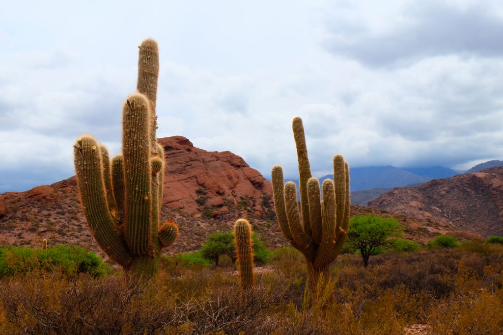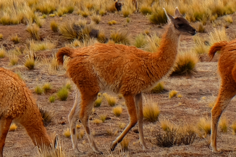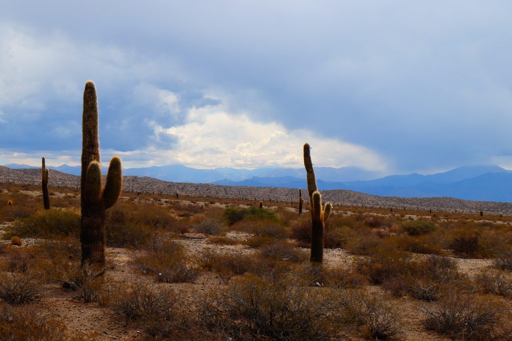 Um auf die Kultstraße zu gelangen, nehmen wir von Salta aus erst einmal die Ruta 33, die uns sehr schnell auf eine Höhe von 3.300 Metern führt. In der Hochwüste leben Herden von Guanacos. Einige von ihnen sind sogar recht zutraulich und fotogen zugleich. Als wir den Parque Nacional Los Cordones mit all seinen Kakteen erreichen, baut sich oberhalb der Berge ein Gewitter auf, das uns kurze Zeit später volle Lotte erwischt. So schnell wie es da war, ist auch wieder weg. Beim Erreichen der Campsite scheint schon wieder die Sonne.