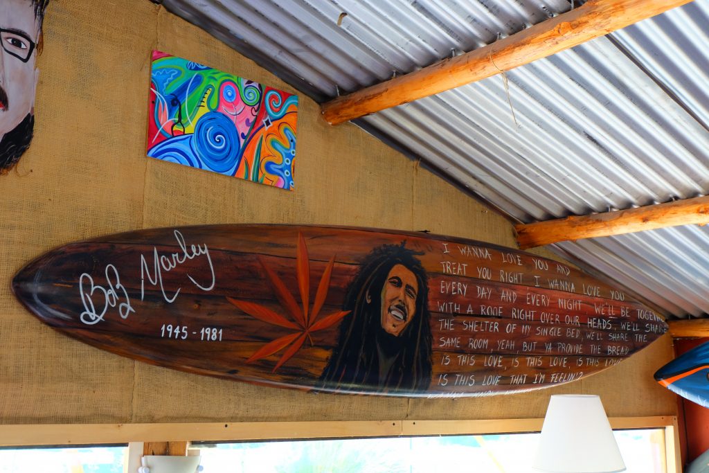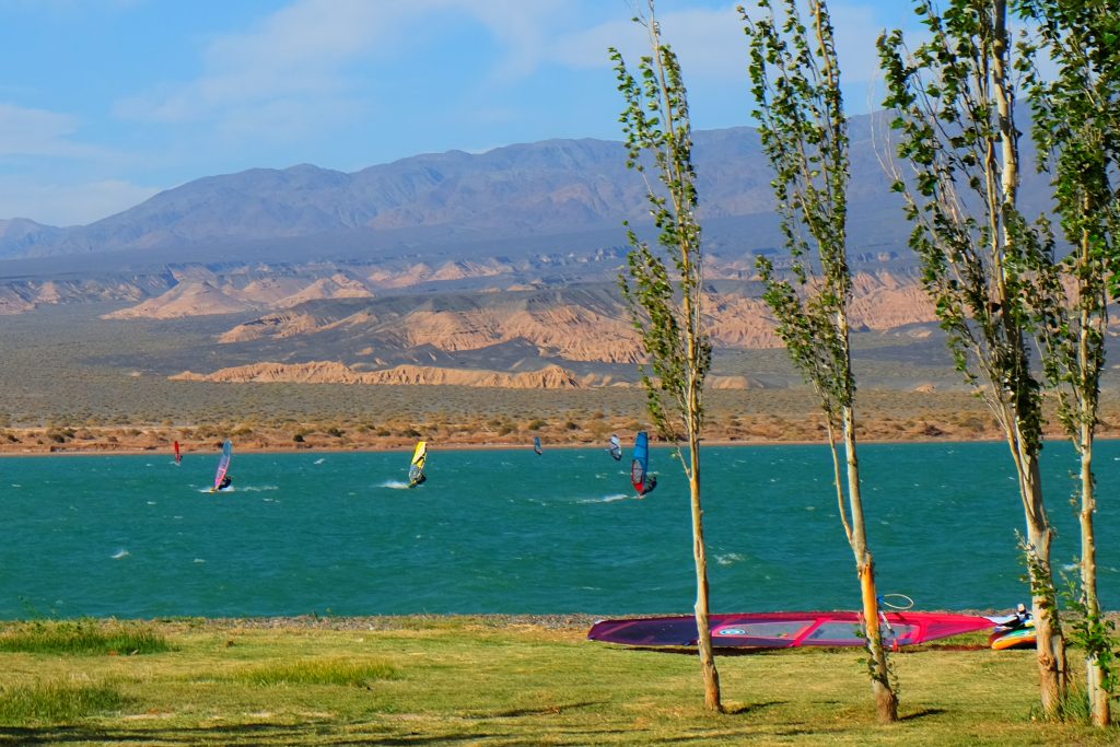 Ziel ist der Dique Cuesta del Viento. Ein riesiger Stausee inmitten der Bergwelt, der wegen der starken Winde bei den Surfern beliebt ist. Und da dürfen wir natürlich nicht fehlen… Ein wenig California- und Reggae-Feeling kommt auf. Nicht nur weil die Eagles in der Strandbar rauf und runter spielen – leider nicht live – sondern auch, weil der Spirit von Bob Marley anwesend ist. Das macht einfach nur Spaß! So wie der Leitspruch der Surfer: El Viento ; No Espera ; El Trabajo … Si!