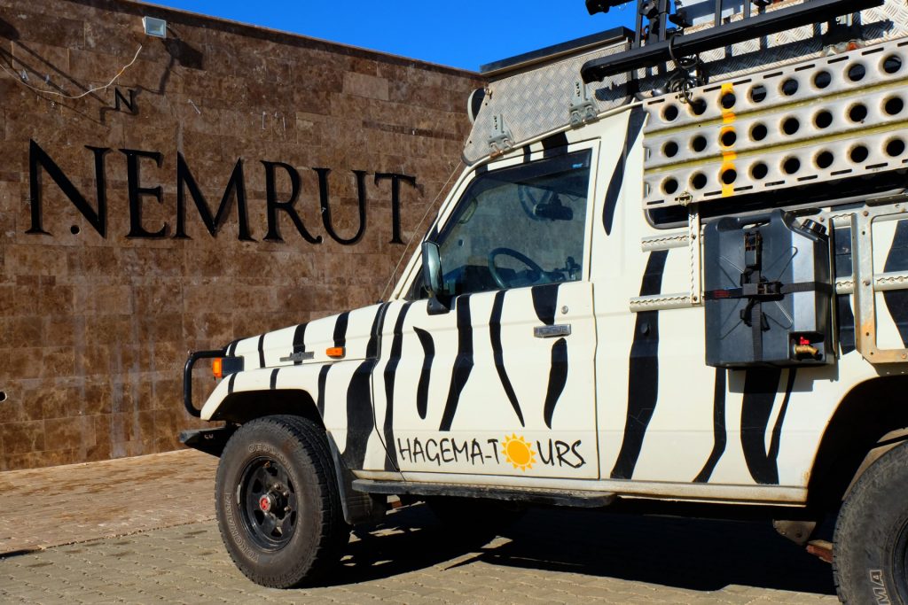 Am späteren Nachmittag erreichen wir die Basisstation des Nemrut Daği. Das ist nicht so einfach bei einem Steigungswinkel von teils 11- 14°. Hartmann kommt schwer ans Pusten … Wir nächtigen in einer Höhe von 1.895 Metern und schlafen in absoluter Ruhe.