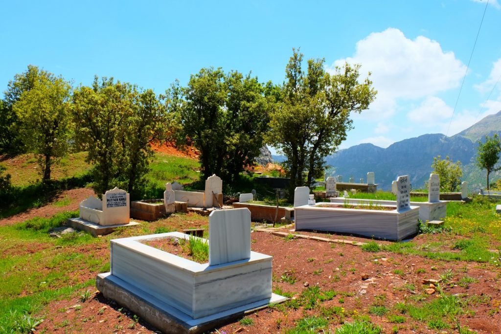 Dann geht’s abwärts, entlang durch einige kleine Ortschaften, Friedhöfen und Moscheen am Rande des Berges.