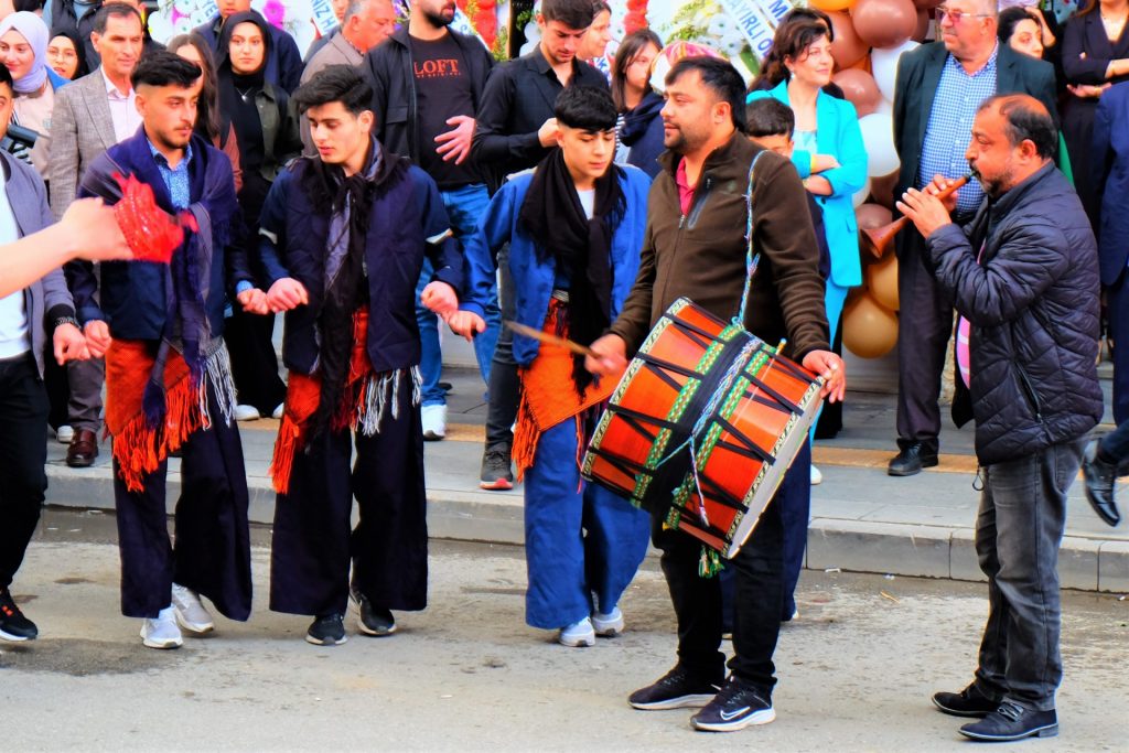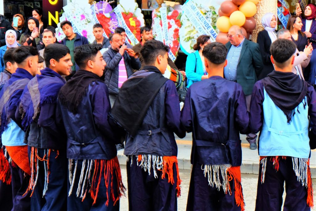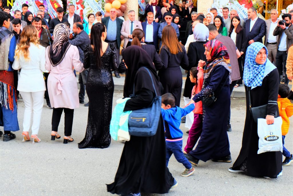 Nach einer wohltuenden heißen Dusche im Privathaus der Campingplatz-Betreiberin fahren wir nach Tatvan, um bei Migros einzukaufen. Auf der gegenüberliegenden Straßenseite hören wir „kurdische Rhythmen“ einer „dicken Tromm“ und einer „Tröte“. Und schon sind wir mittendrin und sehen einen typischen traditionellen Tanz, der von Jungs aufgeführt wird, bevor etwas später auch die Frauen teilhaben dürfen. Zum Abschluss wird – kein Quatsch – ein Lamm auf dem Bürgersteig geschlachtet. Man stelle sich das einmal auf der Hindenburgstraße in Mönchengladbach vor …