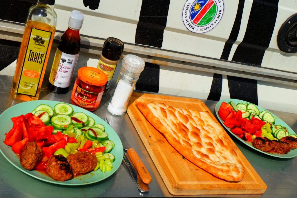 Es ist mal wieder Zeit für schmackhafte Lamm-Köfte mit Salat und Fladenbrot.
