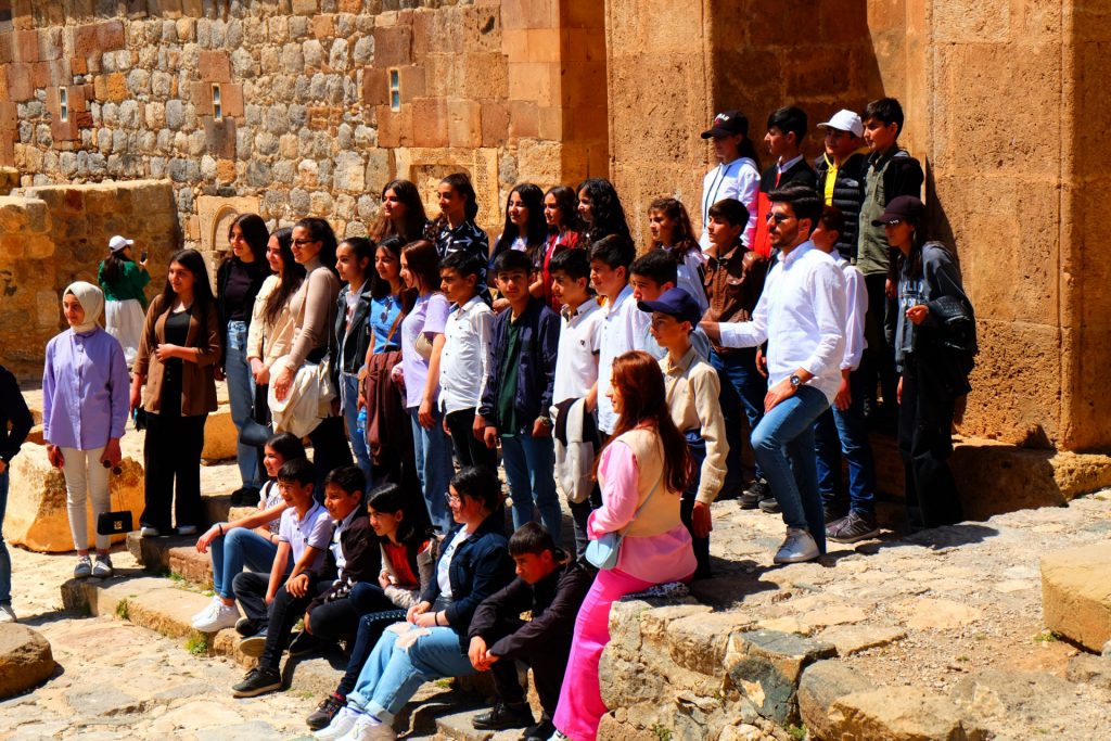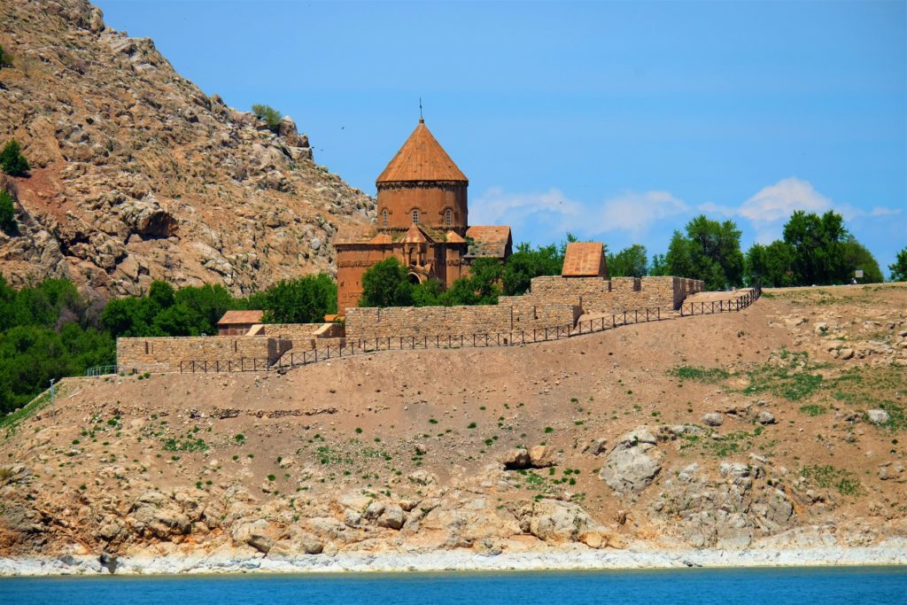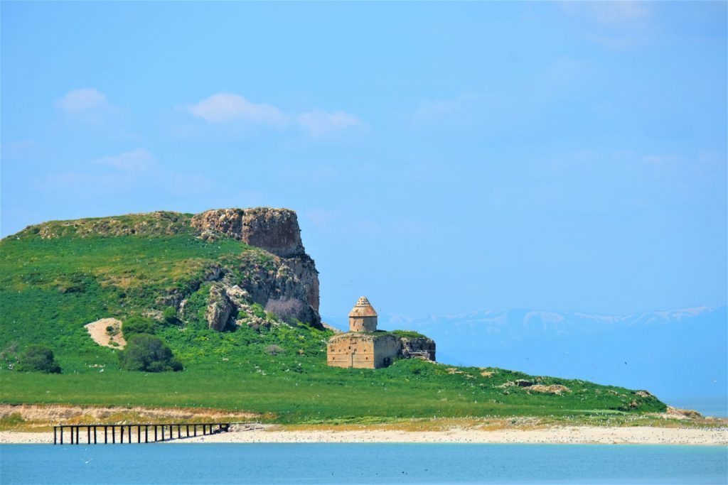 Wir besuchen die im See liegende Insel „Andamar“, auf der die berühmte „armenische Heiligkreuzkirche“ zu besichtigen ist. Wir sind nicht alleine, auch eine Schulklasse ist vor Ort.