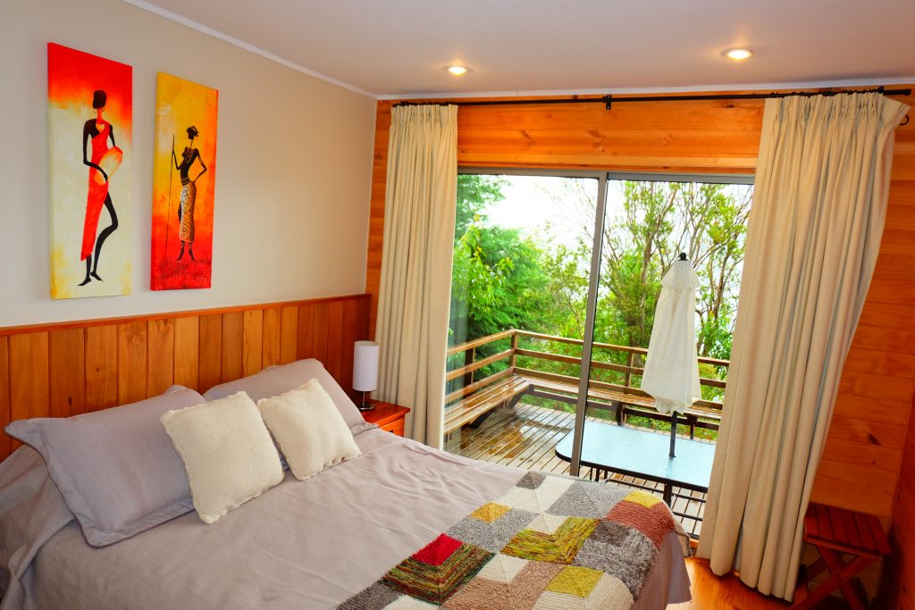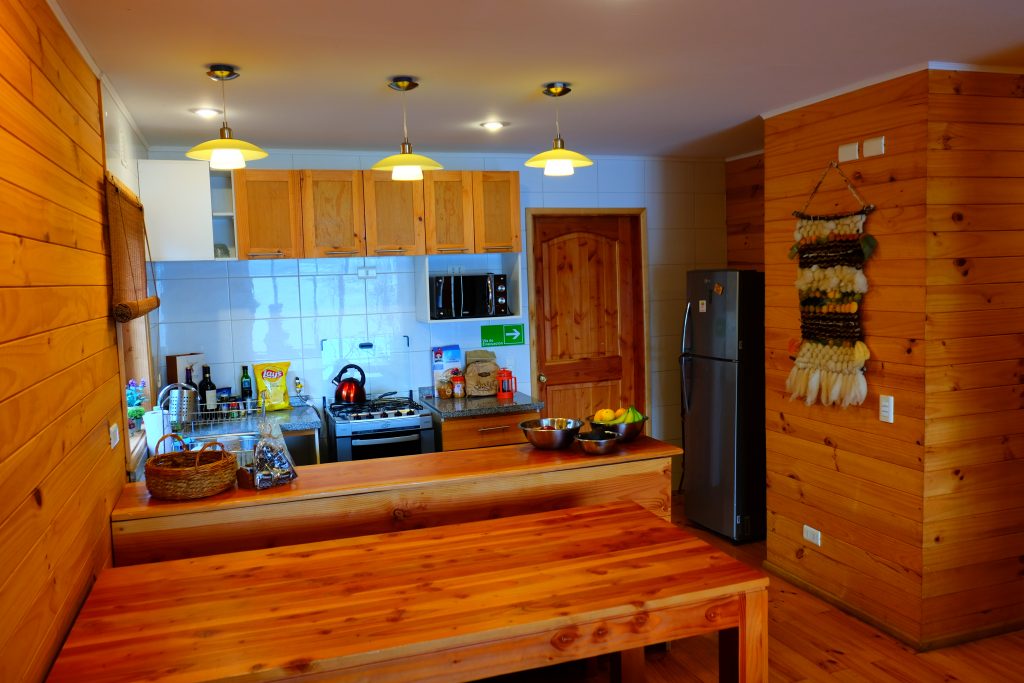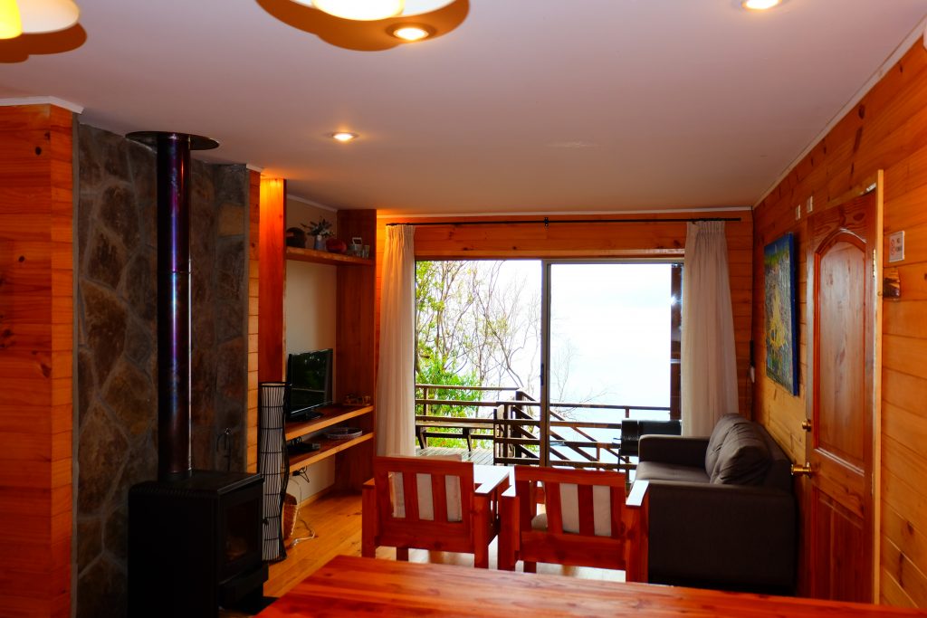 Noch keine hundert Kilometer von Pucón entfernt liegt der 117 Quadratkilometer große und bis zu 268 Meter tiefe Gletschersee Lago Panguipulli in der Region Siete Lagos. Bereits am Morgen haben wir telefonisch bei Paola eine direkt am See liegende Cabaña für 4 Tage reserviert. Dann beginnt es während der Anreise zu nieseln. Der Himmel ist grau, wird dann noch dunkler und die Temperaturen liegen gerade mal bei 15 Grad. War es richtig, sich bereits festzulegen? Als wir Borgolafquen erreichen, werden wir herzlich begrüßt. Obwohl es inzwischen ordentlich regnet, sind wir total begeistert. „Liebe auf den ersten Blick!“ Sehr ruhig gelegen, genügend Platz, bestens ausgestattet und ein fantastischer Blick auf`s Wasser und unseren Privatstrand mit direktem Zugang vom Haus. Im Regal entdecken wir ein altes Kofferradio aus den Siebzigern. Wir schalten es ein. Radio Picarona aus Panguipulli spielt gerade den Peter Fox Song: „Und am Ende der Straße steht ein Haus am See, Orangenblätter liegen auf dem Weg …“ 😉 Jetzt gibt es kein Halten mehr. Wir verlängern unseren Aufenthalt spontan um weitere 5 Tage. Wir machen URLAUB VOM REISEN. Damit es abends schön muckelig wird, zünden wir das Kaminfeuer an. Holz ist genügend vorhanden, doch ein Bärenfell ist leider nicht aufzutreiben… Und am nächten Morgen scheint schon wieder die Sonne.