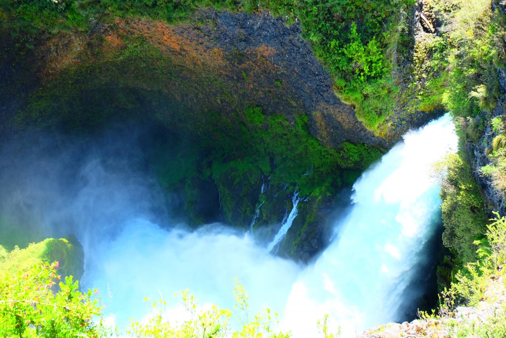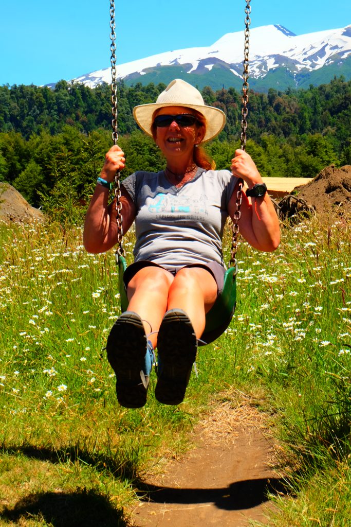 Wir nehmen die Strecke vorbei am Doppelvulkan Choshuenco-Mocho, um den Reserva Biológica mit Namen Huilo-Huilo zu erreichen. Die Caballos sind bereits für uns gesattelt, doch wir möchten uns heute lieber selber etwas bewegen. So wandern wir zum gleichnamigen Salto (Wasserfall). Ein sehr schöner Weg durch die urwüchsige Natur. Wer nach der Tour noch Energie übrig hat, darf sogar noch auf die Schaukel…