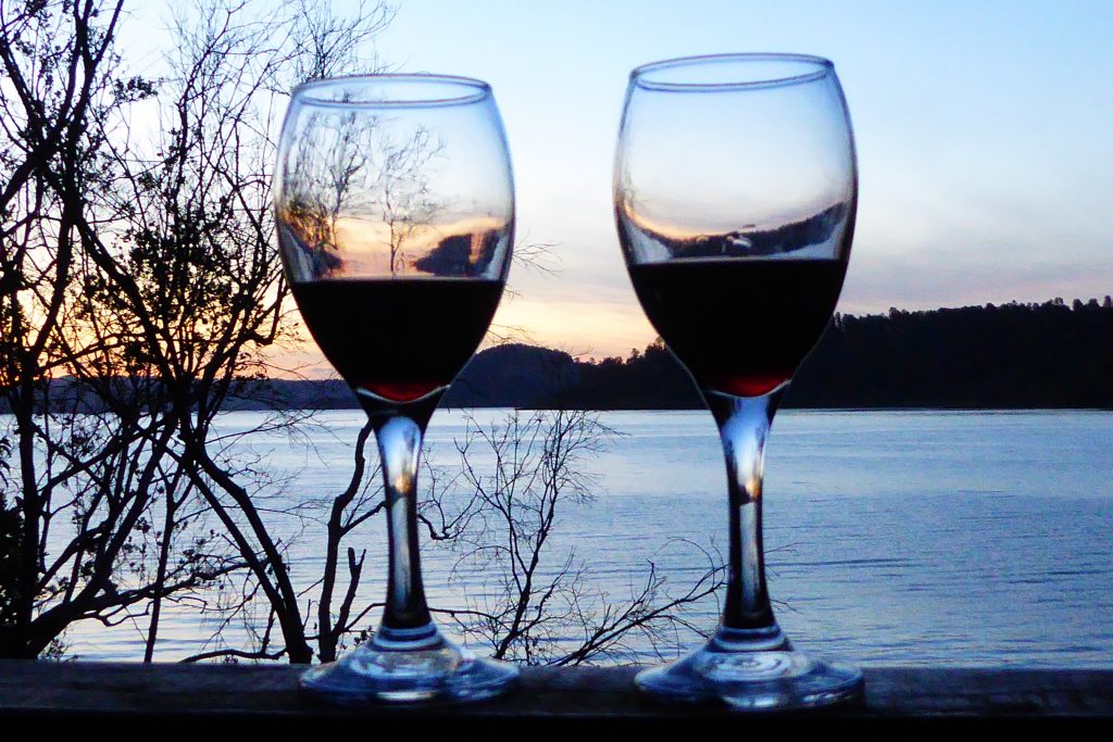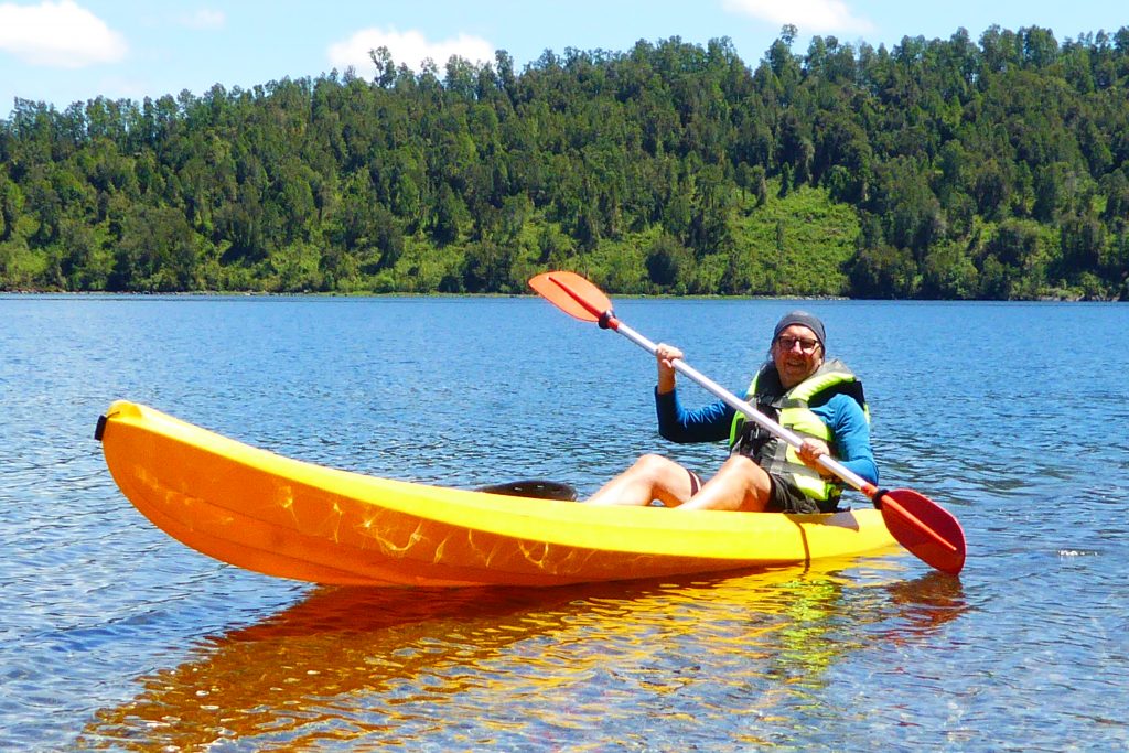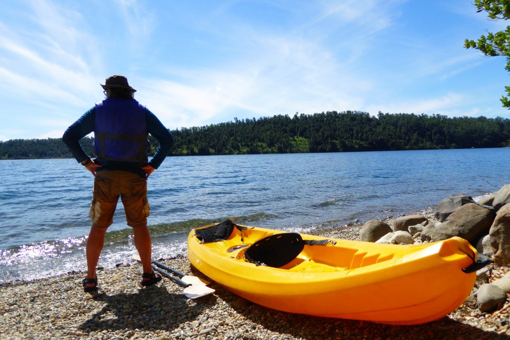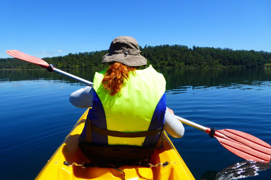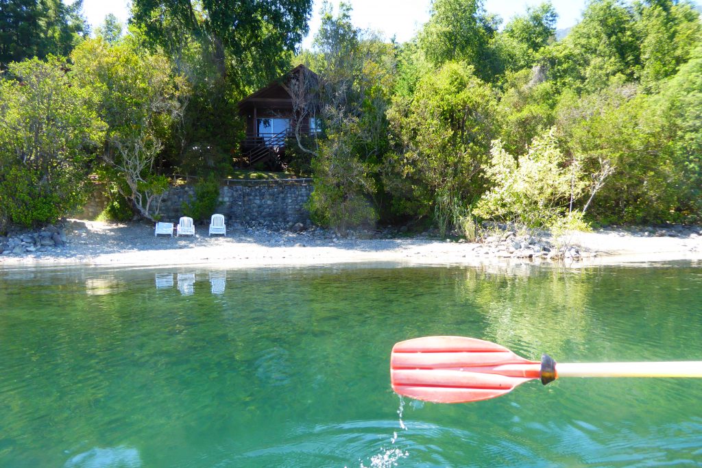 Nachts gehen die Temperaturen runter bis 7 Grad. Am Weihnachtstag haben wir strahlend blauen Himmel und das Thermometer steigt auf 23 Grad. Ideale Voraussetzungen, um eine weitere Kajaktour auf dem See zu unternehmen. Wir erkunden verschiedene Uferregionen, wo sich an den frei zugänglichen Abschnitten chilenische Familien zum Pick-Nick eingefunden haben. Der Küstenbereich steht unter Qualm vor lauter Grills, auf denen das Fleisch bruzelt. Die letzten Meter werden dann noch ganz schön wellig, sodass eine nasse Hose nicht ausbleibt. Was soll`s: Wir gönnen uns direkt eine Festtags-Cava am Strand.