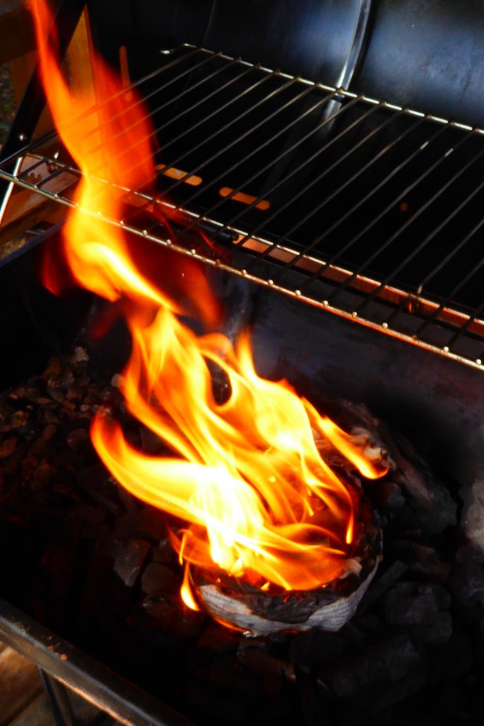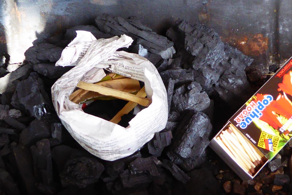 Assado. Beim Einkauf im Supermercado verkneifen wir uns die Frage, wo denn „Grillanzünder“ zu finden sind, da wir nicht als „Stupido Gringo“ in die Geschichte eingehen wollen. Wir verwenden die von Gustavo vor einigen Wochen gelernte Vulkantechnik, um die Kohlen anzuglühen. Und, es klappt sogar.