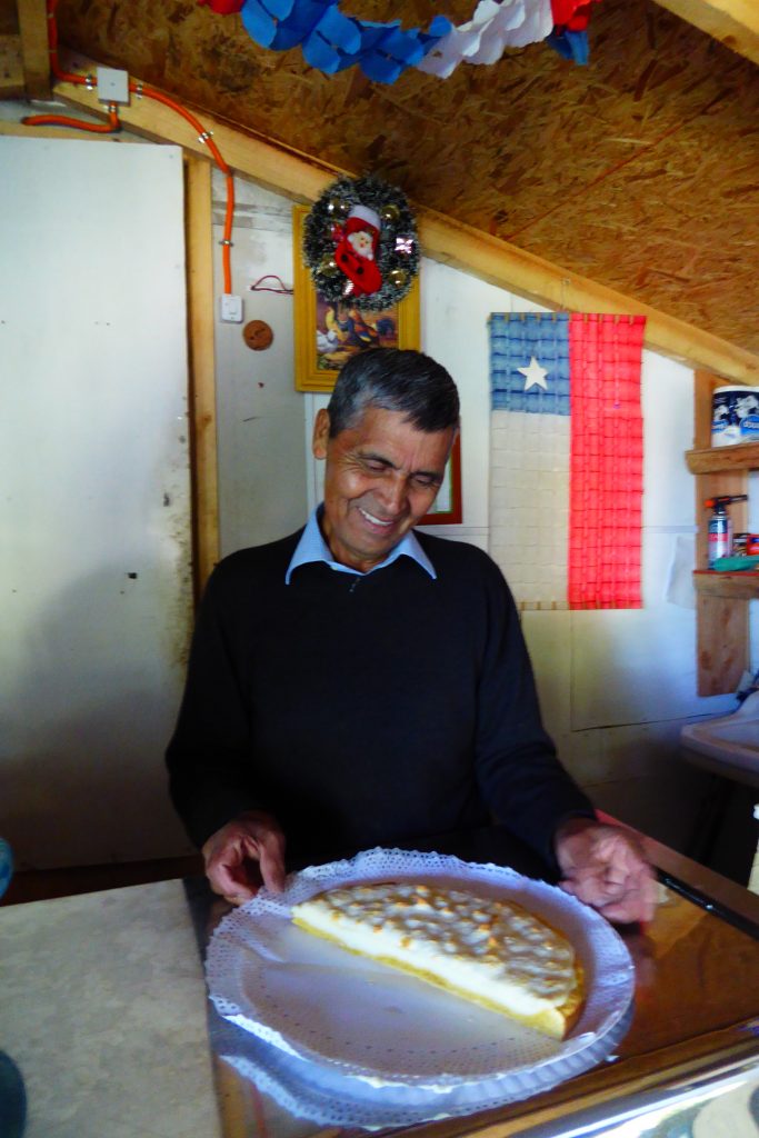 Auf der anderen Straßenseite der Unterkunft gibt es einen der vielen Läden in denen es alles und nichts gibt. Hier eher nichts, dafür aber den vom Señor Felipe selbst gebackenen legendären „Kuchen de Lemón“. Wir nehmen direkt eine Hälfte. Übrigens sagen die Chilenen tatsächlich „Kuchen“ zum Kuchen und nicht „Tarta“ wie die Spanier.