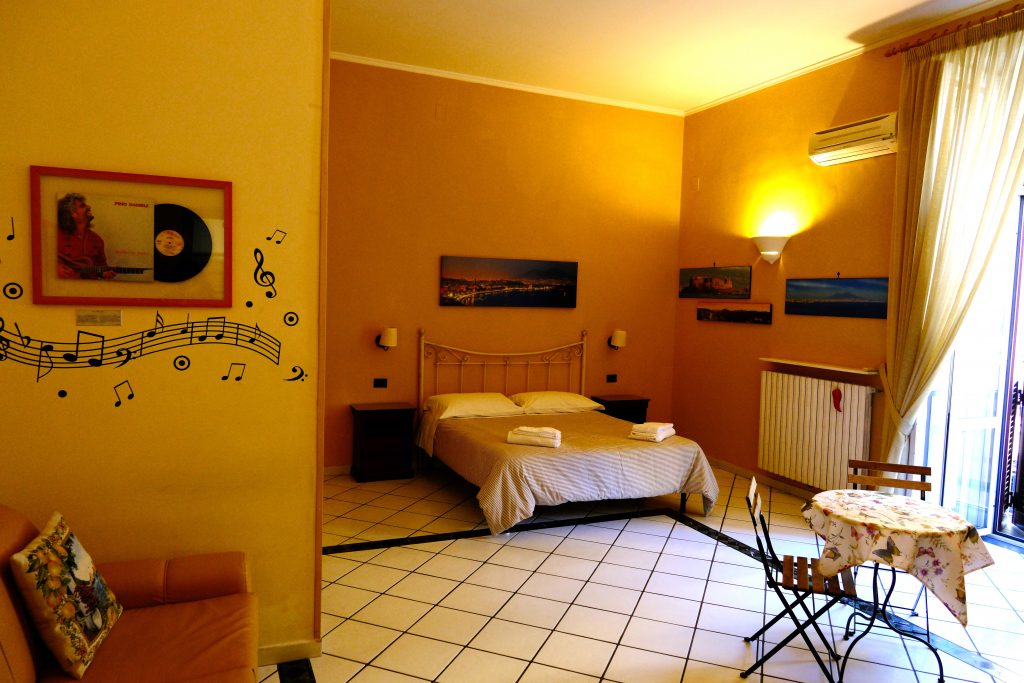 Begrüßt werden wir von „Dottore“ Angelo, Dario und Lina sowie dem „Geist von Pino Daniele“, dem großartigen neapolitanischen Cantautore, der in allen Räumen durch Fotos, Vinyl-Schallplatten und Bildern anwesend ist. Die von Pino 1977 herausgebrachte Langspielplatte „Terra mia“, wurde sogar zum Namensgeber der Unterkunft.