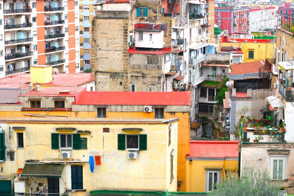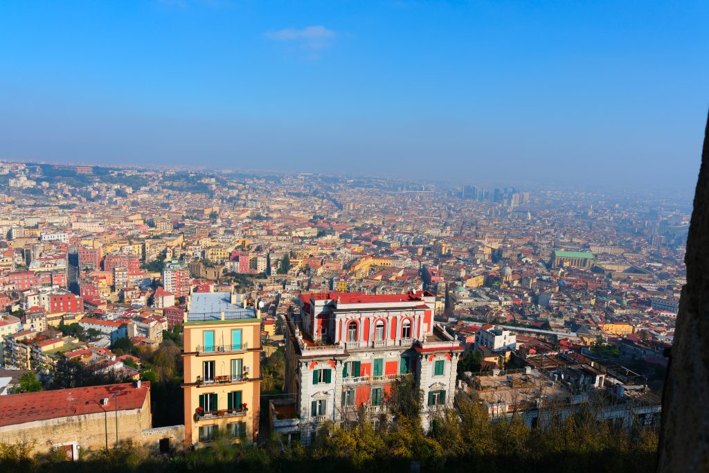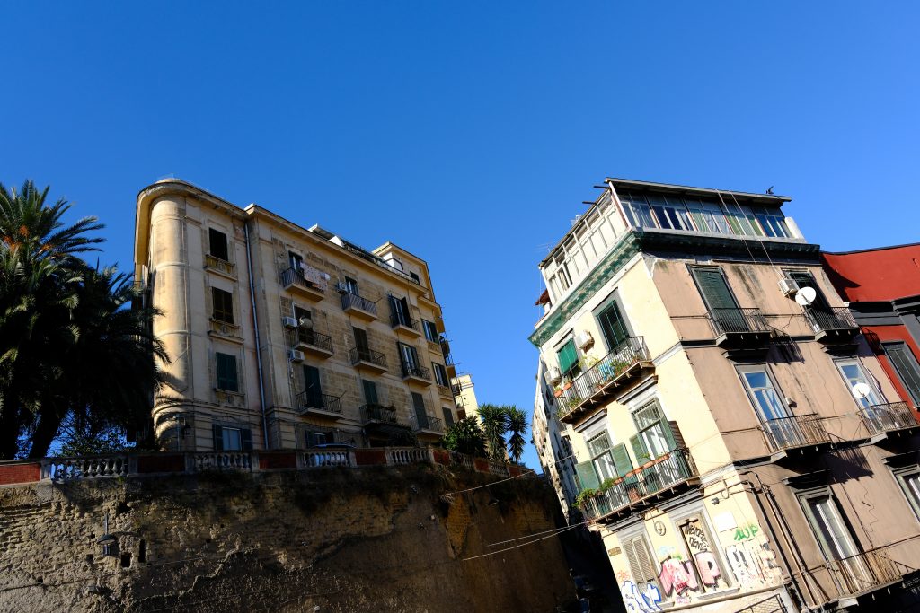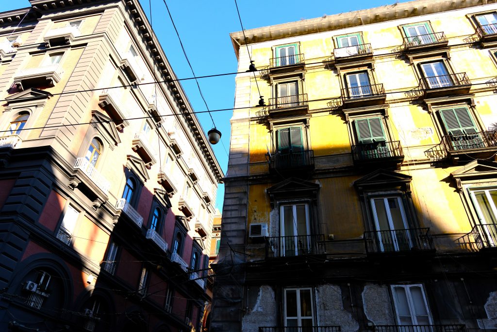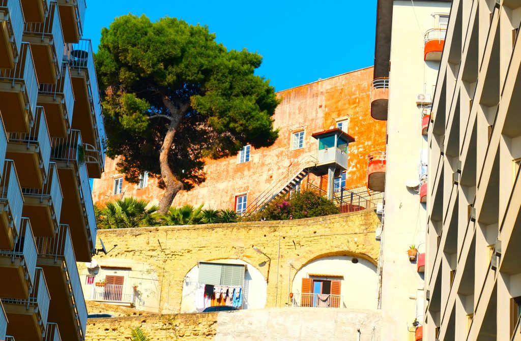Wieder am Tageslicht schauen wir auf das am Fuße des Hügels liegende dicht bewohnte und charakteristische Viertel „Sanità“. Einst von eher Wohlhabenden bewohnt, ist es im Laufe der Zeit ein etwas ärmeres Viertel geworden, in dem wohl auch die „Famiglia“ ihre Anhänger sucht.