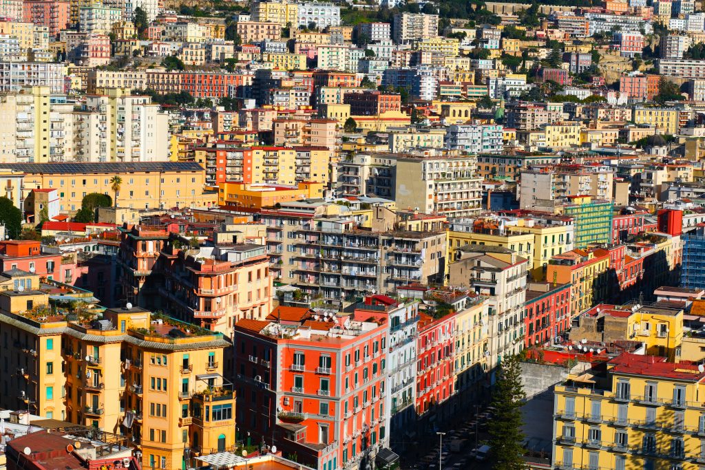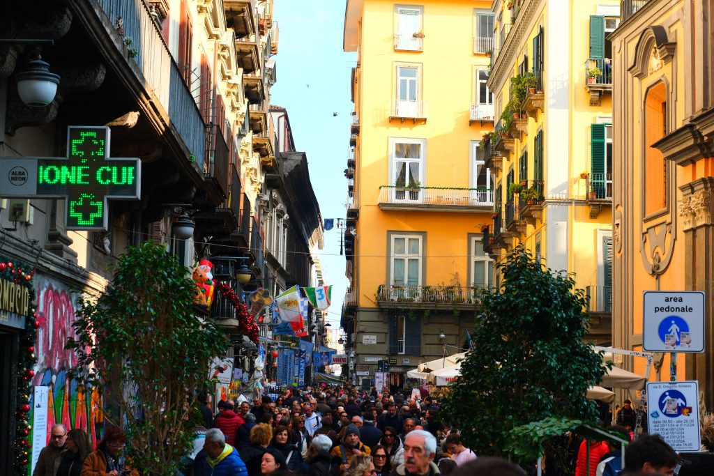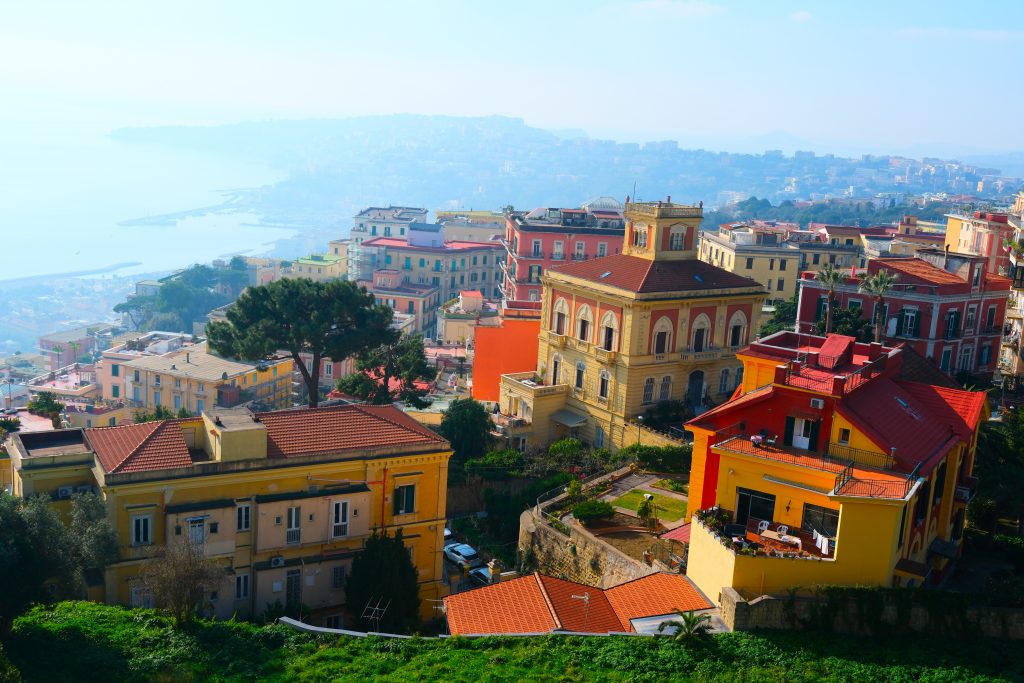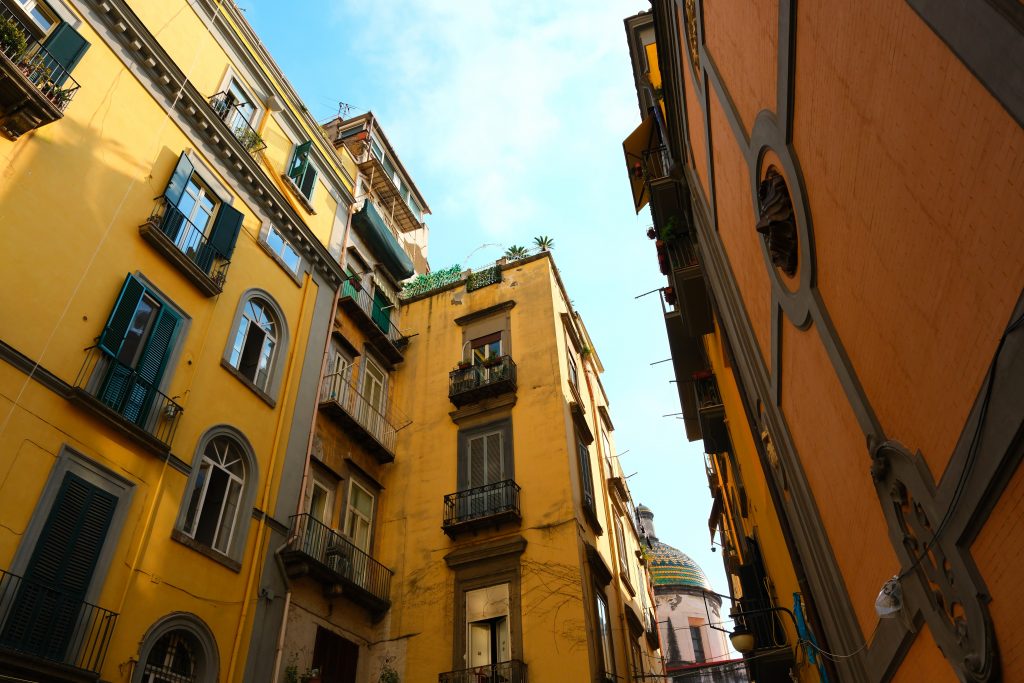 Wieder am Tageslicht schauen wir auf das am Fuße des Hügels liegende dicht bewohnte und charakteristische Viertel „Sanità“. Einst von eher Wohlhabenden bewohnt, ist es im Laufe der Zeit ein etwas ärmeres Viertel geworden, in dem wohl auch die „Famiglia“ ihre Anhänger sucht.