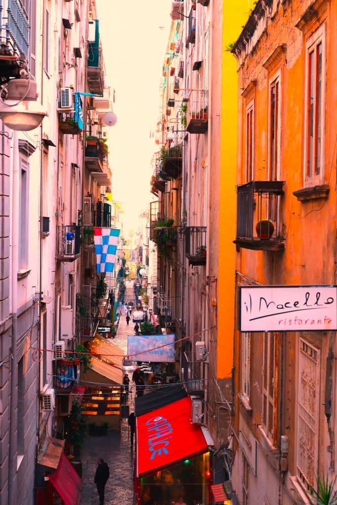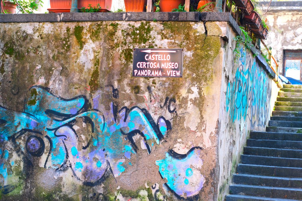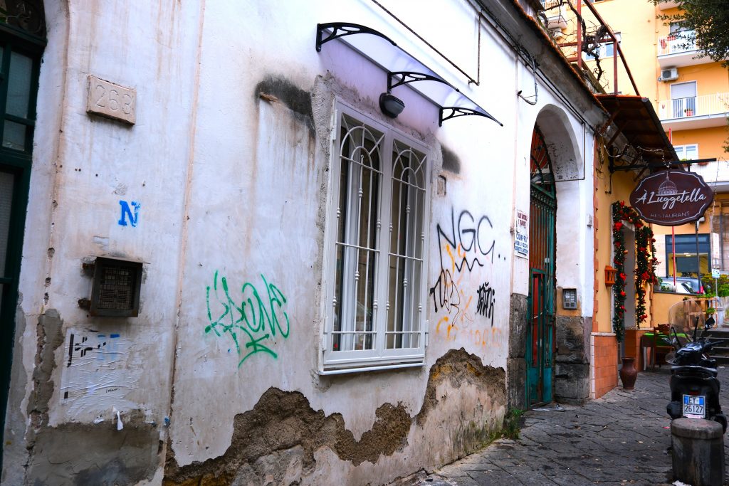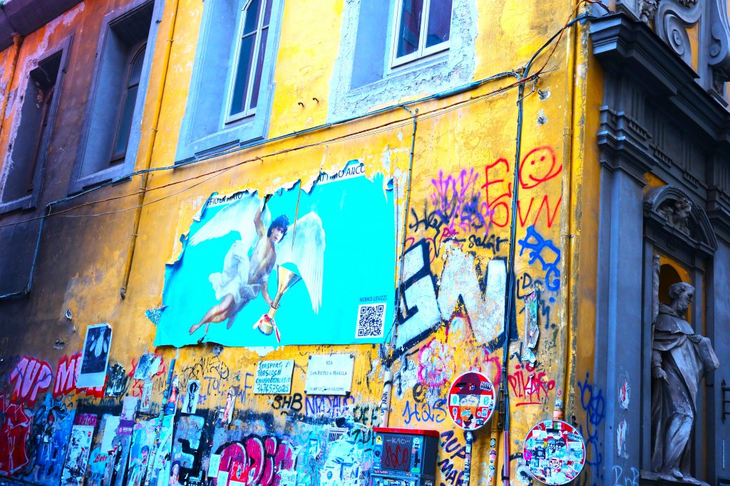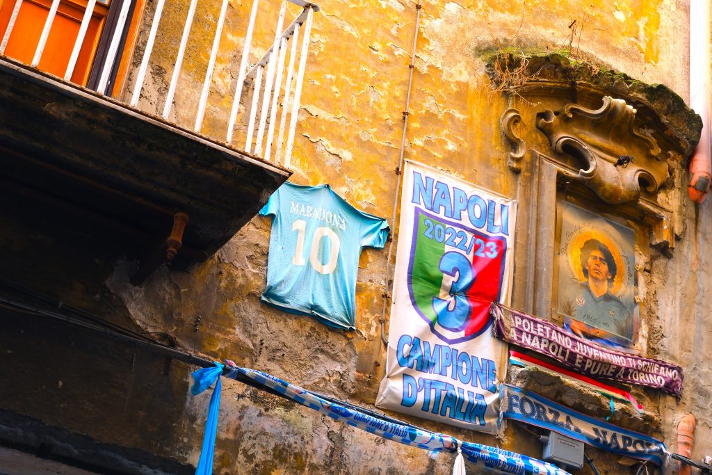 Kultort im Viertel ist seit langem der „Largo Maradona“, wo dem einstigen Spieler vom SSC Napoli durch ein großes Wandbild gehuldigt wird. Vermutlich sind von ihm in der ganzen Stadt weitaus mehr Wandmalereien und Graffiti zu finden, als in Buenos Aires. Okay, es ist mal wieder Zeit für einen kleinen Klugscheisser-Hinweis. Das Wort Graffiti ist eigentlich der Plural des aus der italienischen Sprache stammenden Worts Graffito und bezeichnete ursprünglich „eine in Stein geritzte Inschrift oder auch eine ornamentale bzw. figurale Dekoration“.