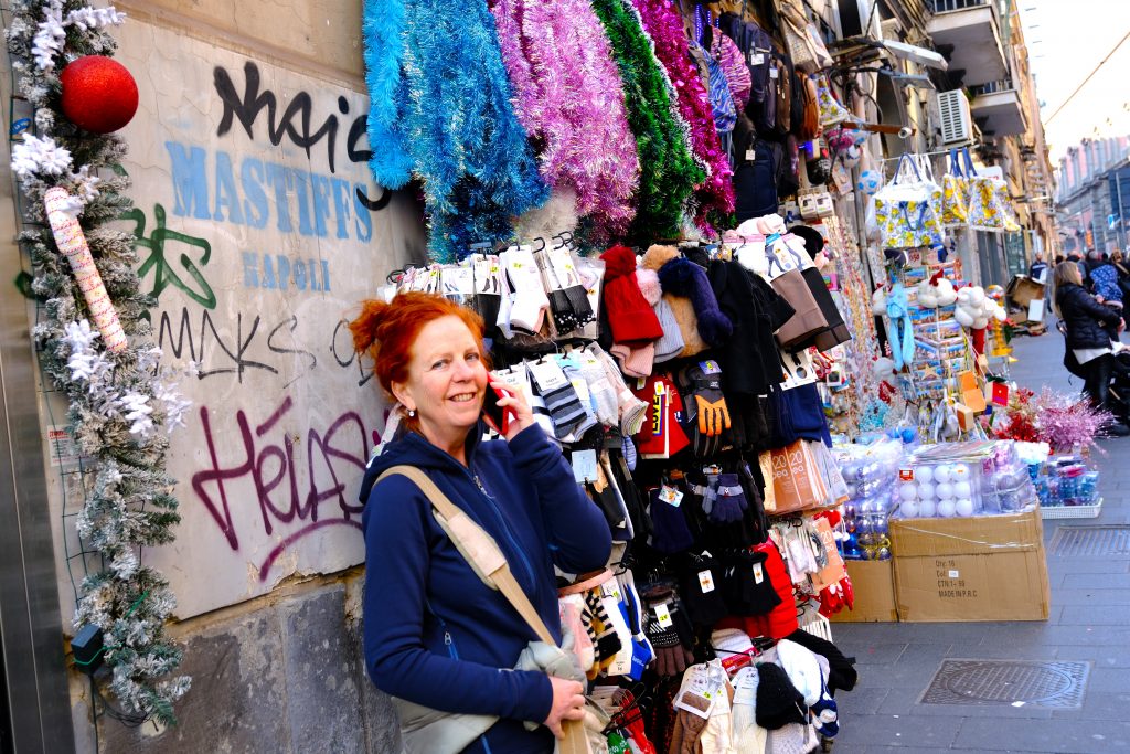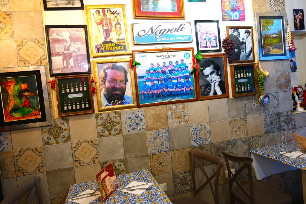 Es ist Zeit, sich etwas die Beine zu vertreten und die nähere Umgebung zu erkunden. Und natürlich auch, ein passendes Lokal für Martina’s Geburtstagsessen zu finden. Die „Nummer 10“ ist auch nach 40 Jahren in der ganzen Città omnipräsent. An Diego kommt hier keiner vorbei, außer man fummelt sich wie Martina frei, um inmitten von Nippes und Jedöns, Wünsche zum Geburtstag entgegen zu nehmen. 🙂
