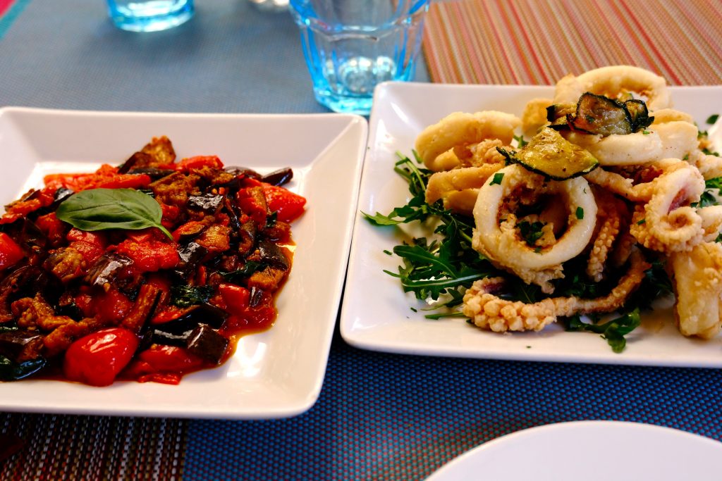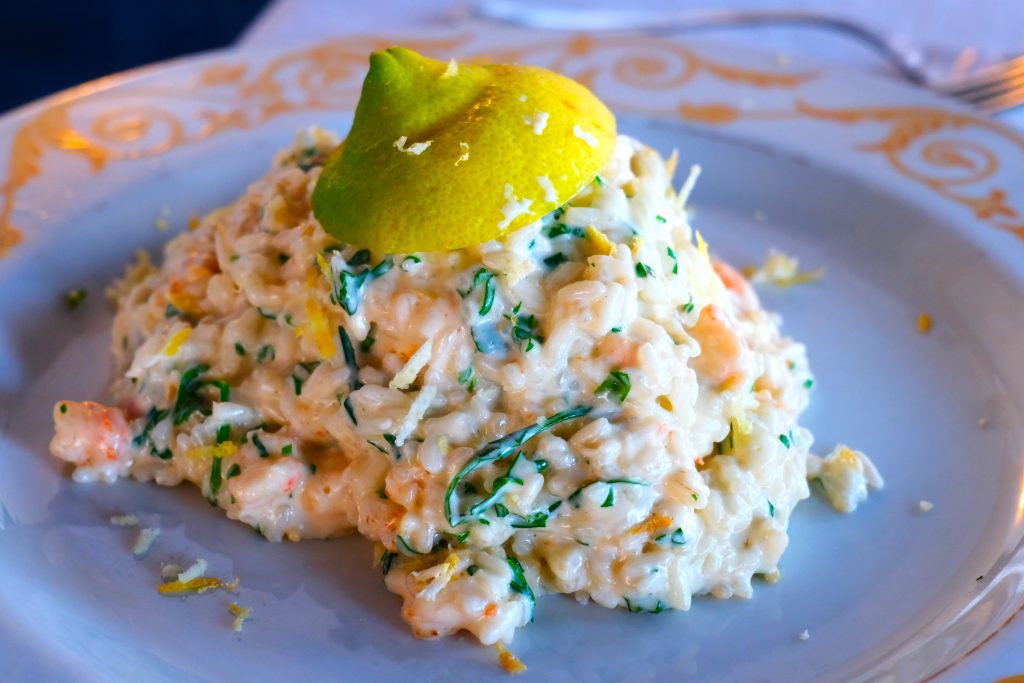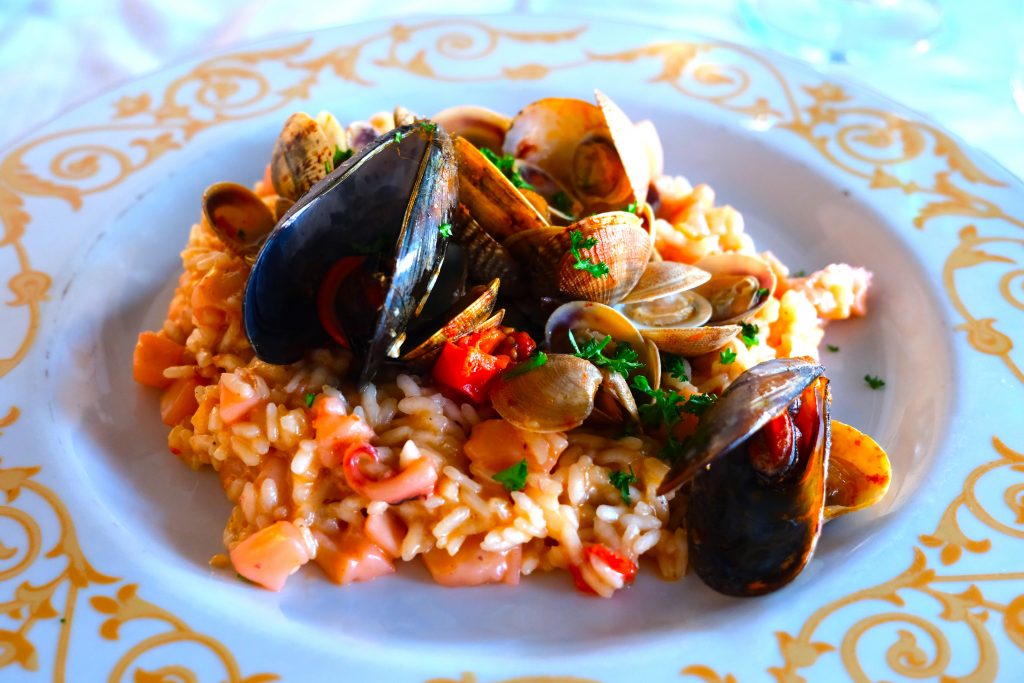Von Signore Massimo werden wir begrüßt und erhalten unseren Tisch. Das Lesen des Menüs ist bereits zum Zunge schnalzen. So wählen wir Gemüse, Oktopus sowie Risotto Frutti die Mare.