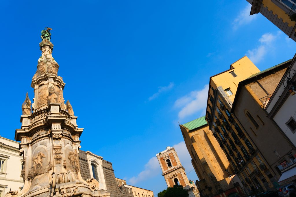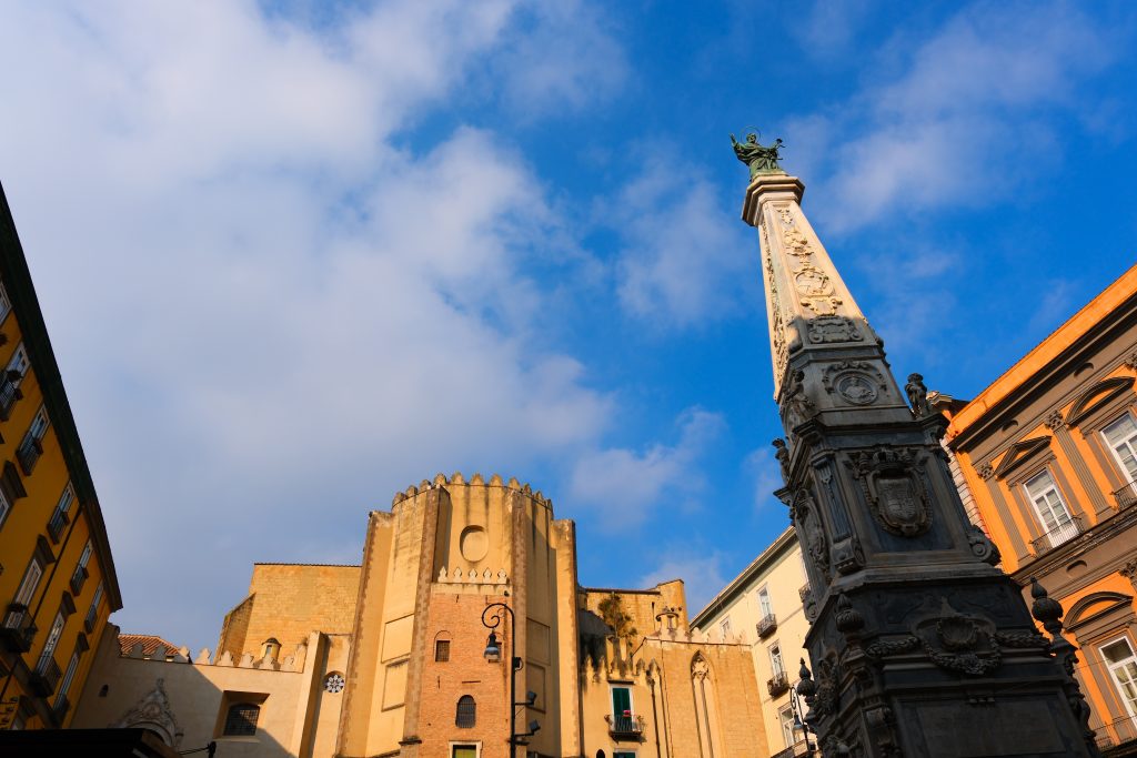 Schlägt man ein paar Haken, ist es direkt ruhiger. So auch auf der „Piazza San Domenico Maggiore“ mit ihrem gleichnamigen Obelisken.