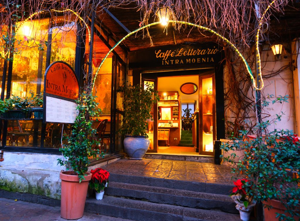 Es ist immer noch Silvester und endlich Zeit für einen Aperitivo im „Caffé Letterario“ auf der „Piazza Bellini“. Hier ist es heute rappelvoll, friedliche Partystimmung weit und breit.