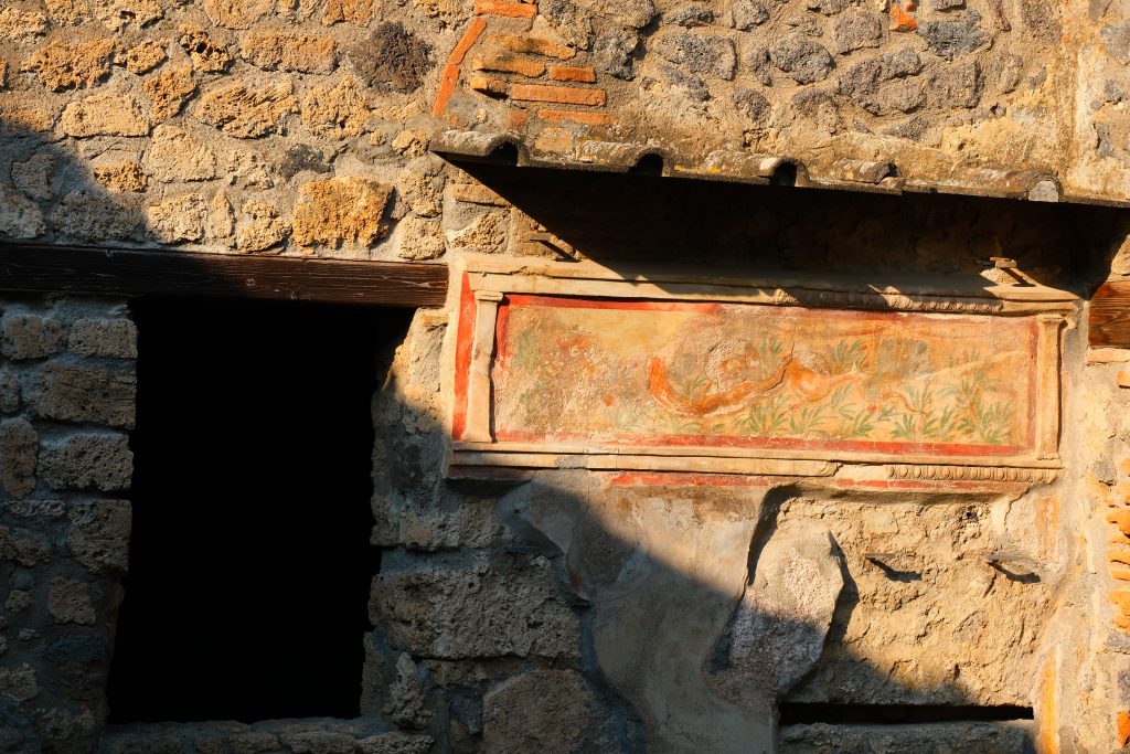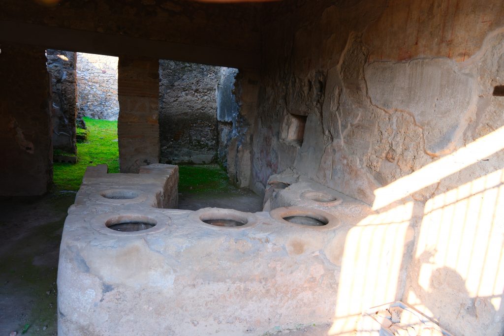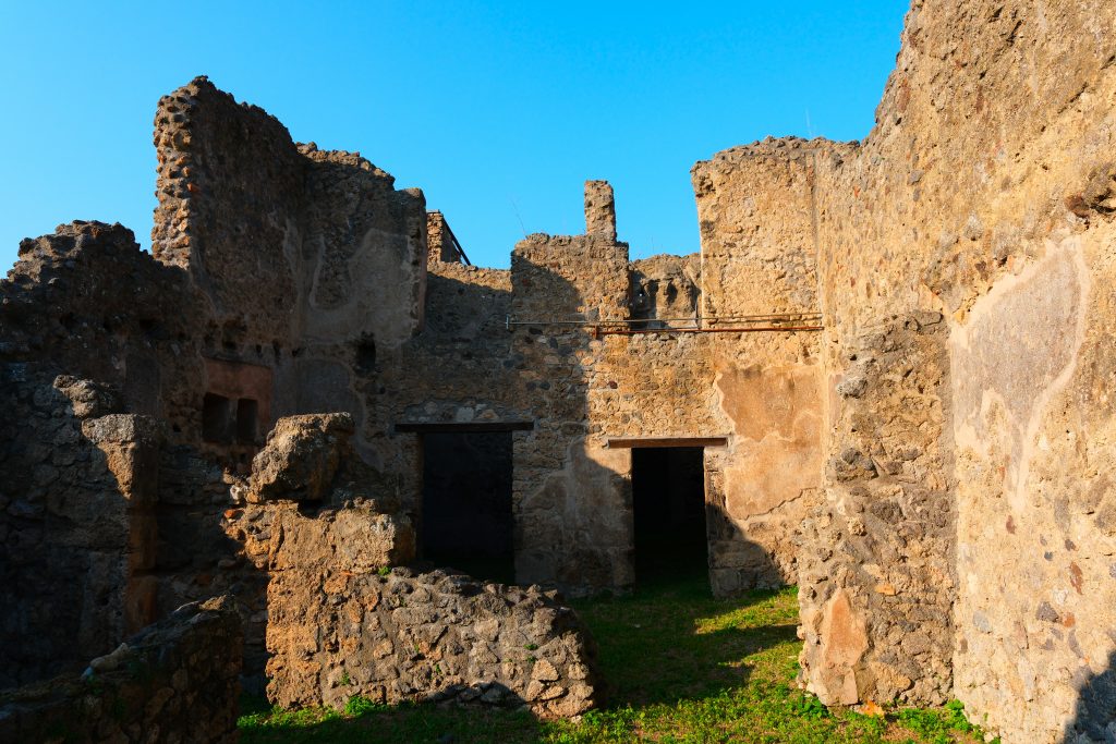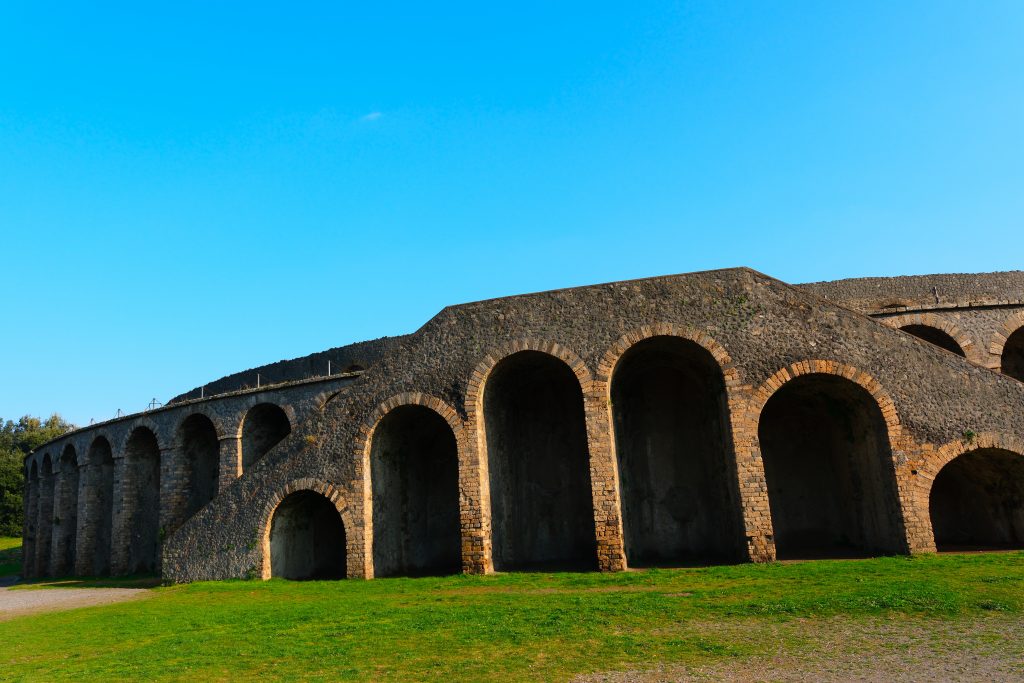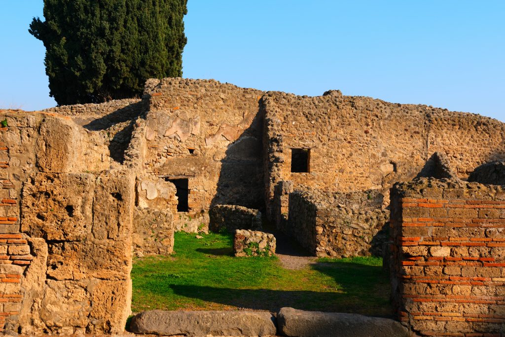 Jetzt nehmen wir erst einmal den Zug in Richtung der Küstenstadt „Sorrent“ auf der gleichnamigen Halbinsel. Dann regnet es plötzlich Asche vom Himmel und Glutlawinen aus heißen Gasen und Asche rasen die Vulkanflanken des Vesuvs hinab. Was ist denn das? Innerhalb kurzer Zeit wird die wohlhabende und kultivierte römische Stadt Pompeji unter einer mehrere Meter hohen Asche- und Bimsschicht begraben. Durchatmen, denn diese Katastrophe passierte bereits im Jahre 79 n. Chr. So können wir gefahrlos am Bahnhof der archiologischen Ausgrabungsstätte aussteigen.