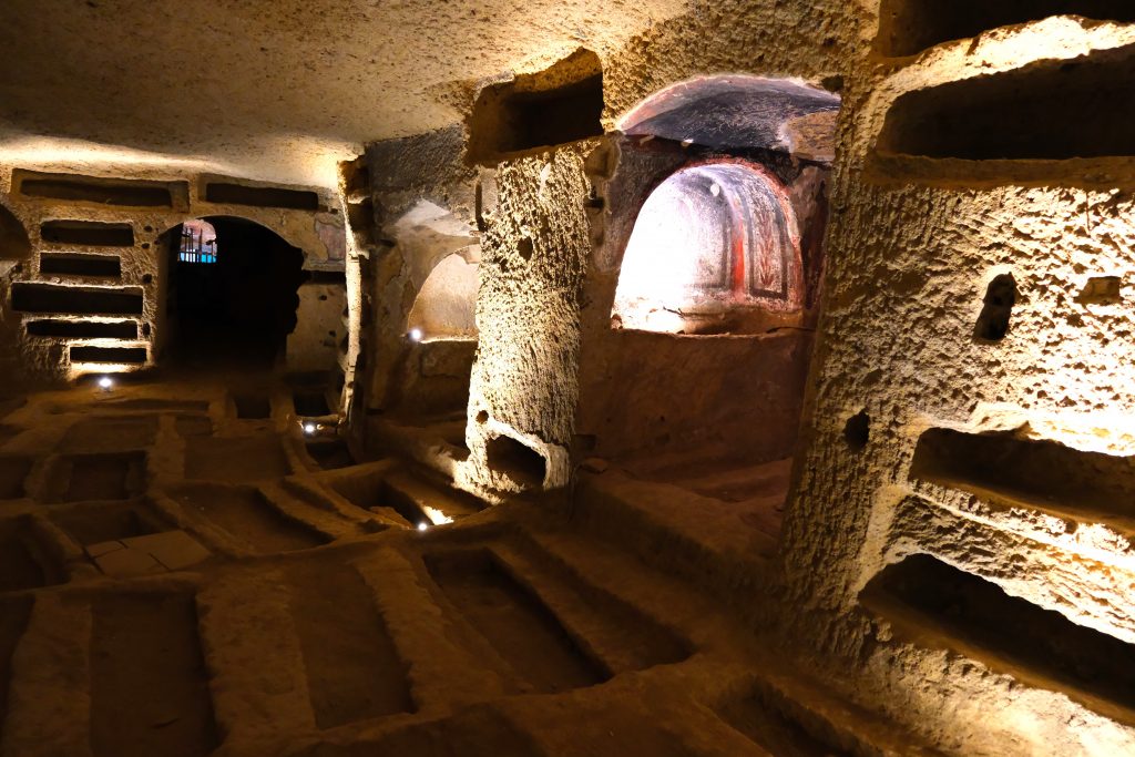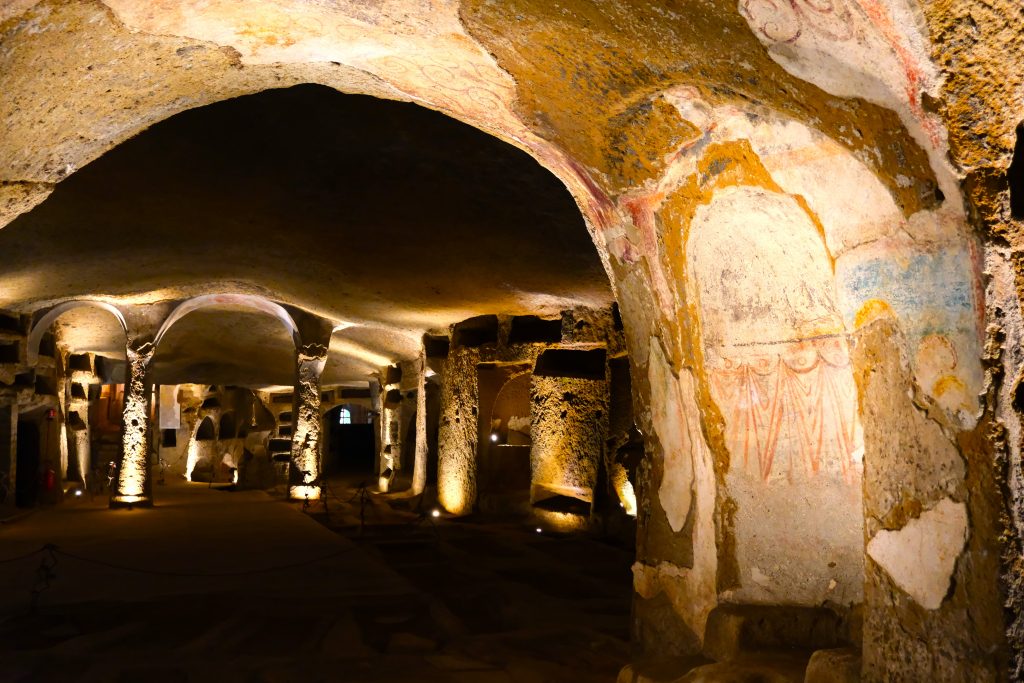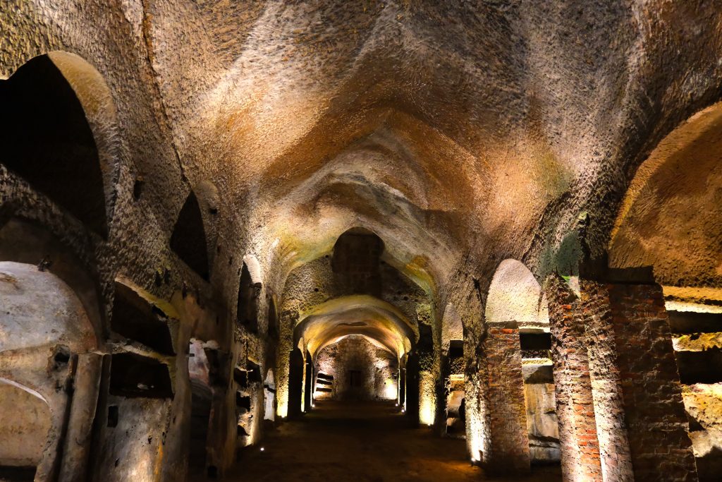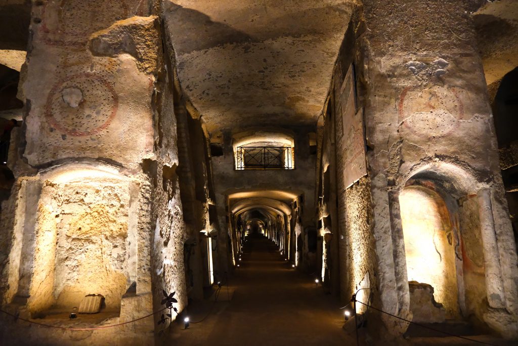 Zum ersten Mal ist der Himmel durchgehend grau und für den Nachmittag ist sogar etwas Regen vorhergesagt. Mit dem Bus fahren wir ein paar Stationen hinauf zum Hügel von Capodimonte. Hier sehen wir uns zuerst die „Basilica dell’Incoronata Madre del Buon Consiglio a Capodimonte“ an, bevor wir dann hinab steigen, zu den „Catacombe di San Gennaro“.