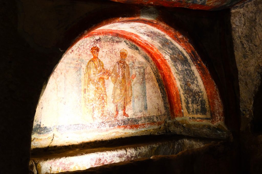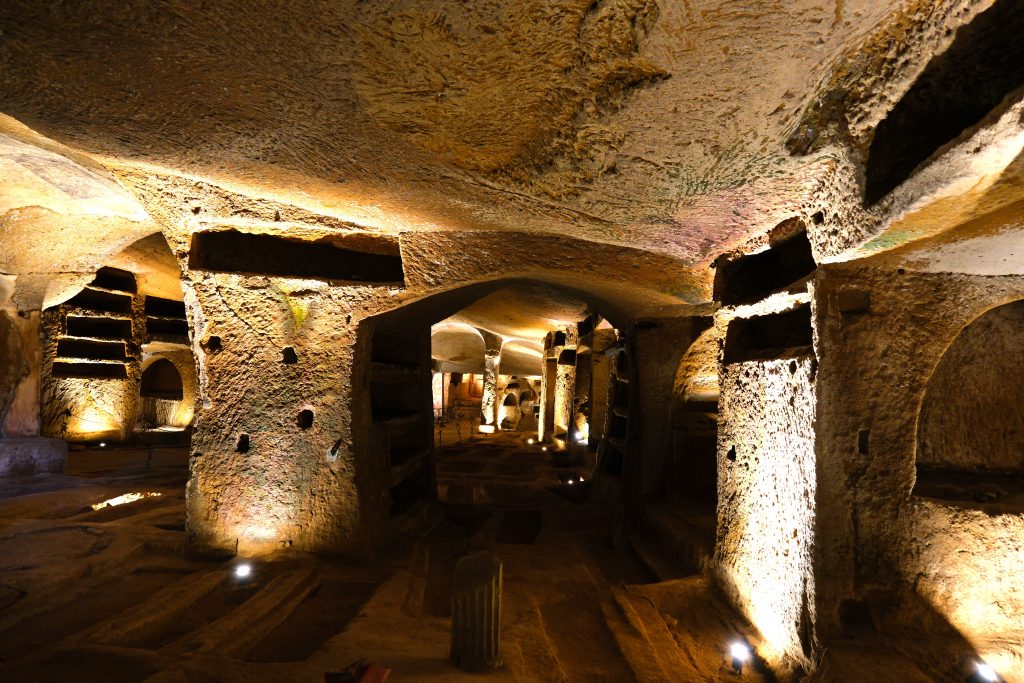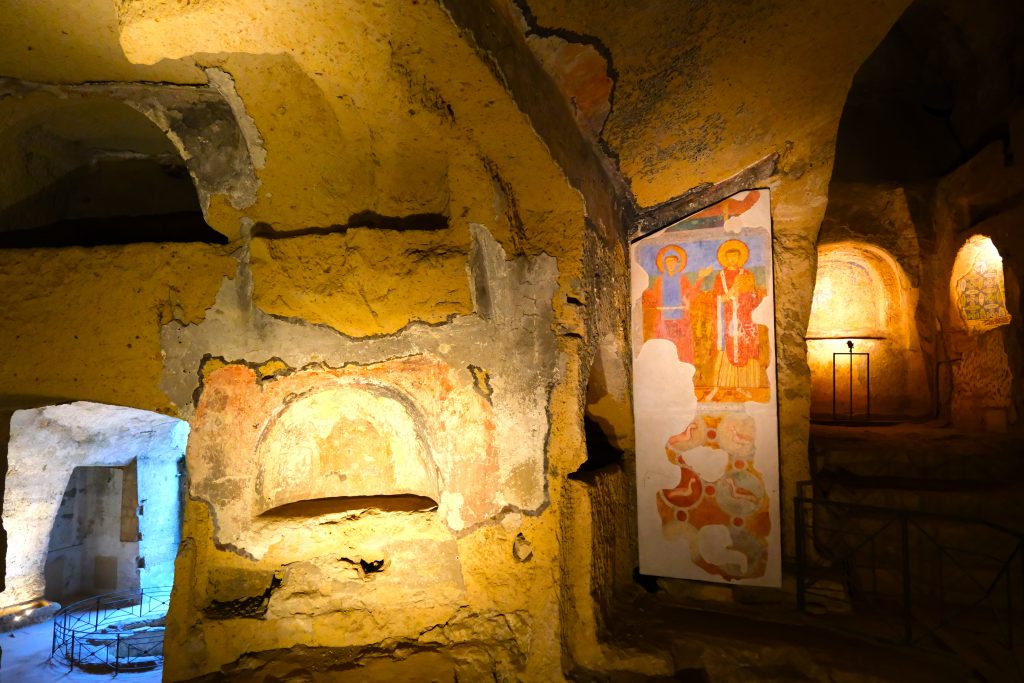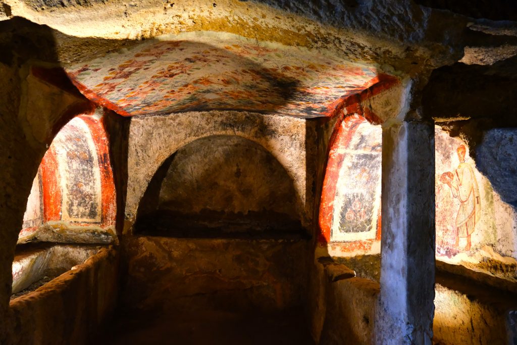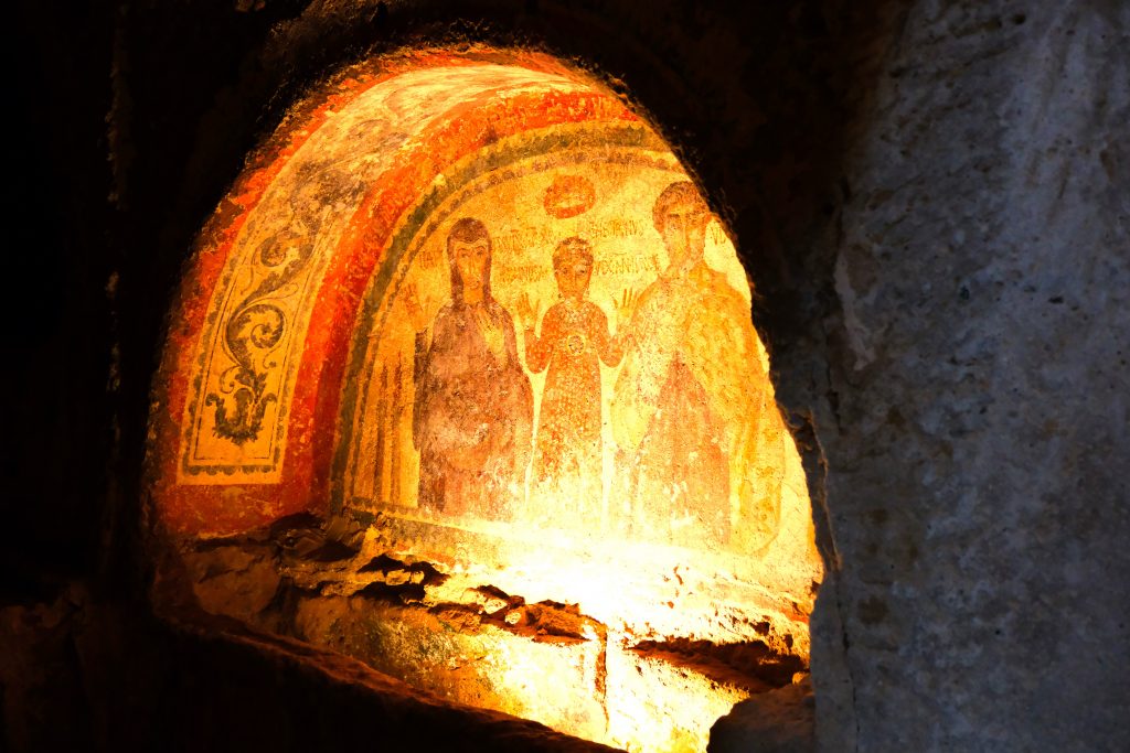 Zum ersten Mal ist der Himmel durchgehend grau und für den Nachmittag ist sogar etwas Regen vorhergesagt. Mit dem Bus fahren wir ein paar Stationen hinauf zum Hügel von Capodimonte. Hier sehen wir uns zuerst die „Basilica dell’Incoronata Madre del Buon Consiglio a Capodimonte“ an, bevor wir dann hinab steigen, zu den „Catacombe di San Gennaro“.