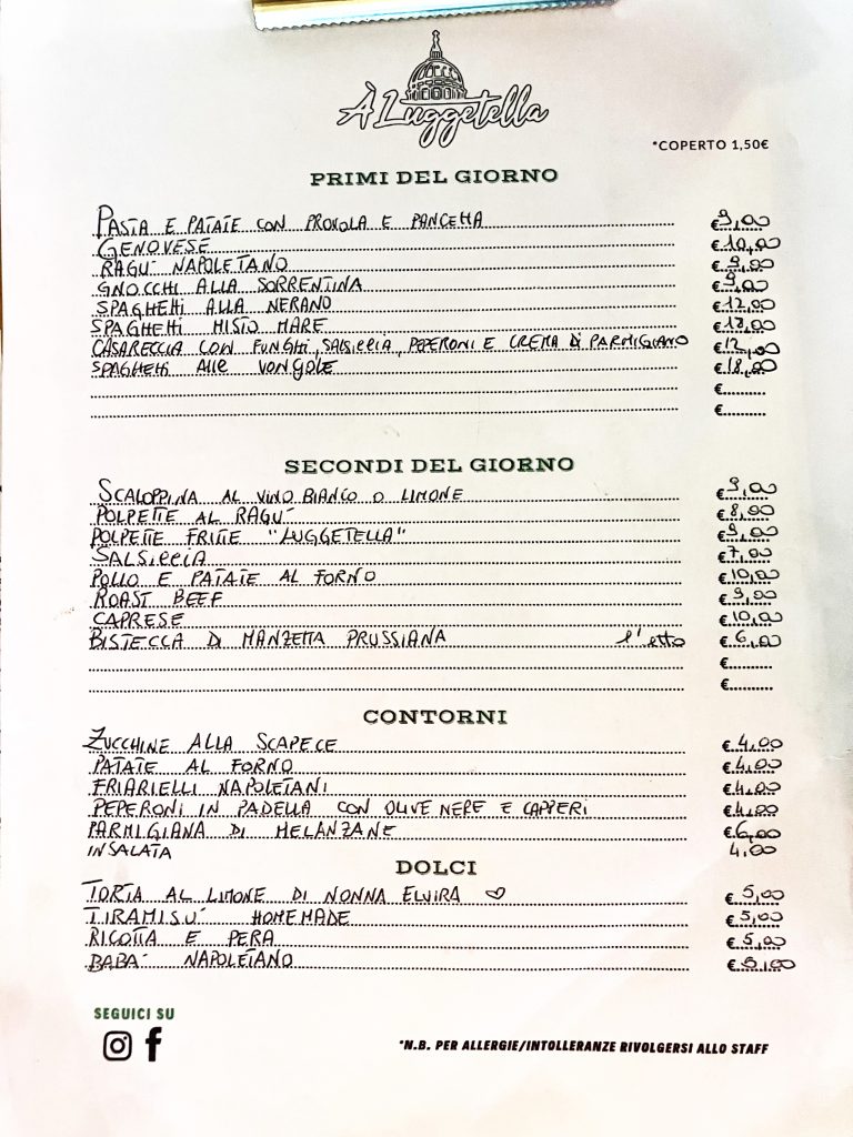 Was würdet Ihr bestellen bei dieser tollen Auswahl? Für uns war es das Ragu Napoletano (Nudeln in Tomatensoße mit über 12 Stunden eingekochtem Fleisch), Gnocchi alla Sorrentina, Zuccine alla Scapece und Friarielli Napoletani, das grüne Gemüse. Buonissimo!