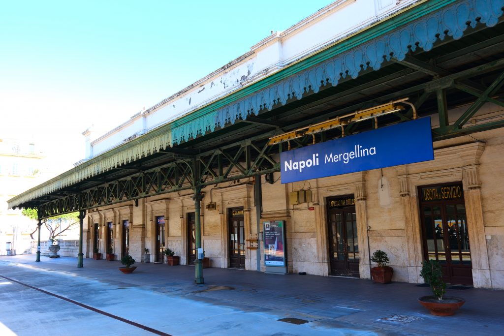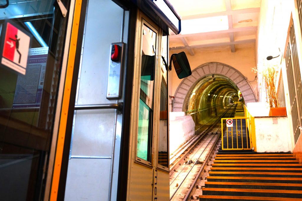 Über Nacht verschwinden sämtliche Wolken und es wieder bestes Wetter mit Temperaturen so um die 14-15°C. Wir fahren mit der Metro zum ehemaligen Bahnhof und heutiger Station „Mergellina“ aus dem Jahre 1925. Von hier nehmen wir zum ersten Mal einen „Funicolare“ (Standseilbahn), um hinauf in den Ortsteil „San Antonio“ zu gelangen.