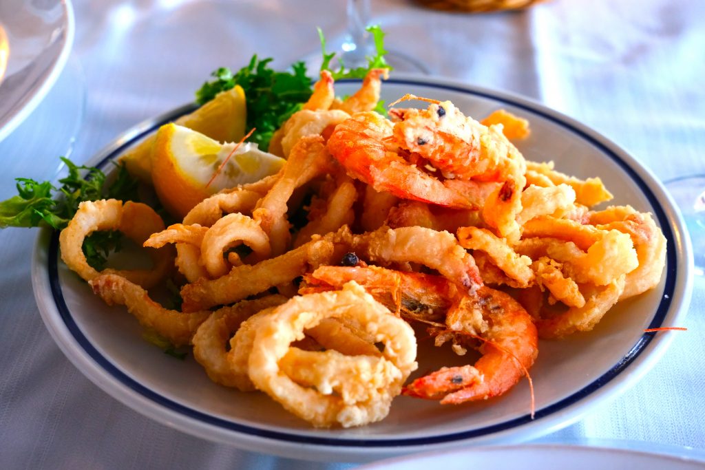 Wir fahren mit dem Omnibus. Die Linie 140 bringt uns an den Rand – nicht der Verzweiflung – sondern des Stadtteils von Posillipo. Und das hat einen Grund mit Namen „Reginella“. In diesem Ristorante essen wir zu Mittag. Zuerst frittierte Gamberi und Calamari und dann Risotto. Einmal mit Rucola, Gamberi und Limone sowie einmal alla Pescatore, also alles, was das Meer so hergibt.