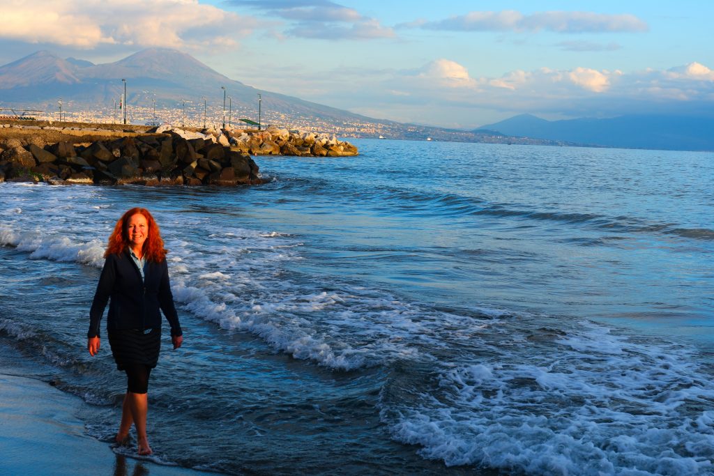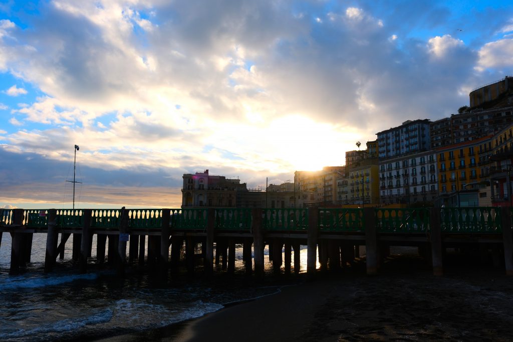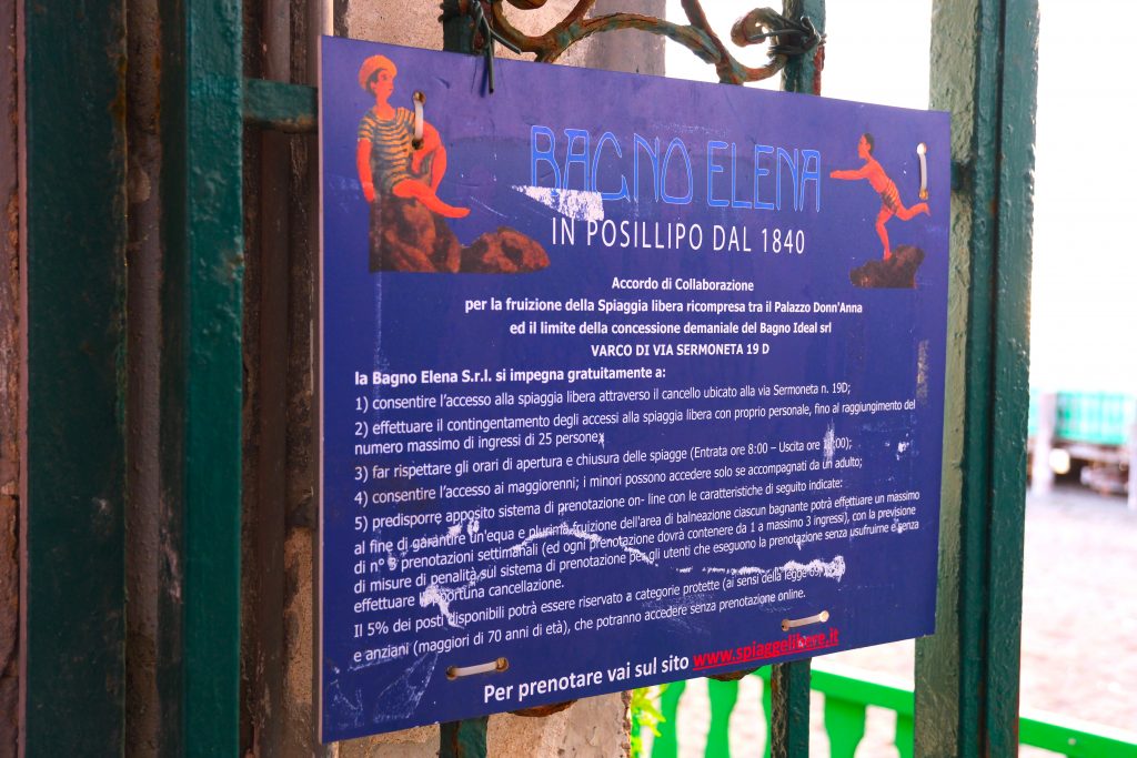Wir erkennen einen Zugang zu einem kleinen Stadtstrand wieder, über den in einem TV-Beitrag berichtet wurde. In dieser Sendung wurde die Gruppierung „Mare Libero Napoli“ vorgestellt, die sich für einen „freien Zugang zum Meer für alle“ einsetzt. Oft ist es so, dass einige Leute den Zugang zum Strand und dem Meer verschließen, da sie meinen, das ist jetzt einfach mal privat. Auf solch eine aberwitzige Idee muss man erst mal kommem. Jedenfalls ist der Zugang heute frei. Also Schuhe aus und Füße abkühlen.