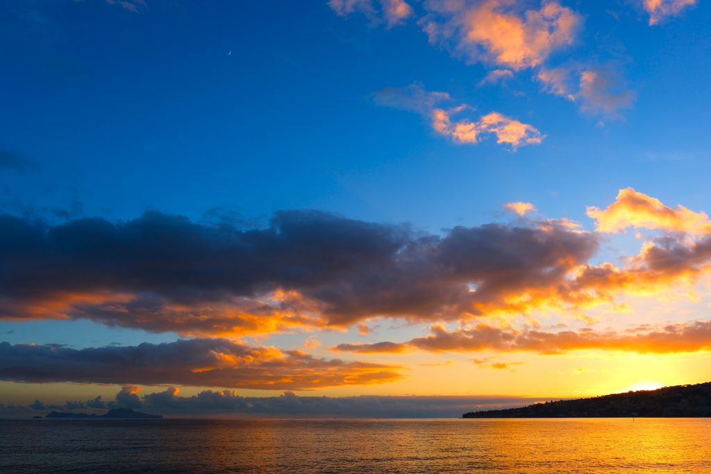 Wenn bei Capri die rote Sonne… Ja, wo ist sie denn hin? Vermutlich schon im Meer versunken und zaubert dadurch diesen unglaublichen gelben (!) Abendhimmel hervor.
