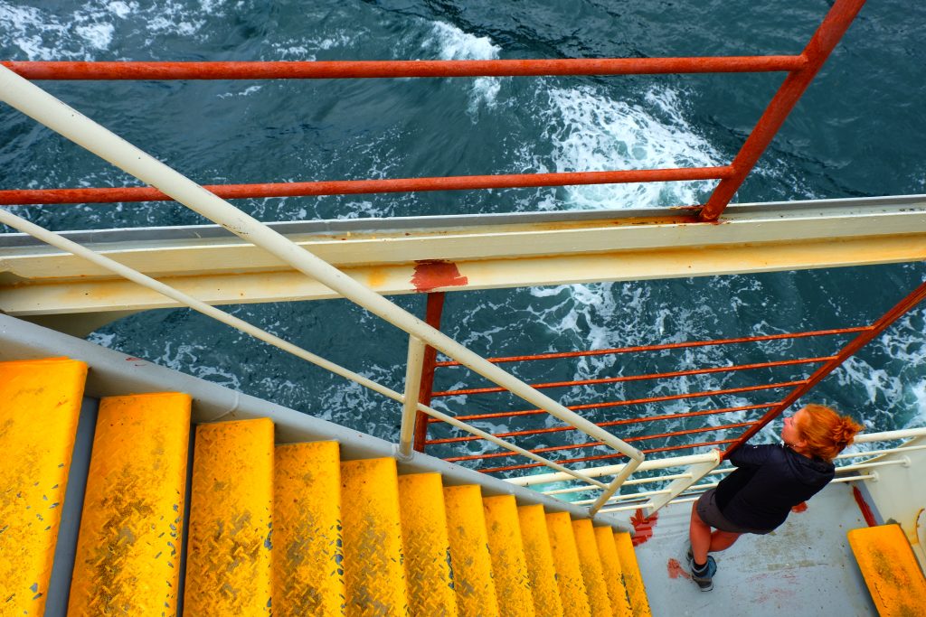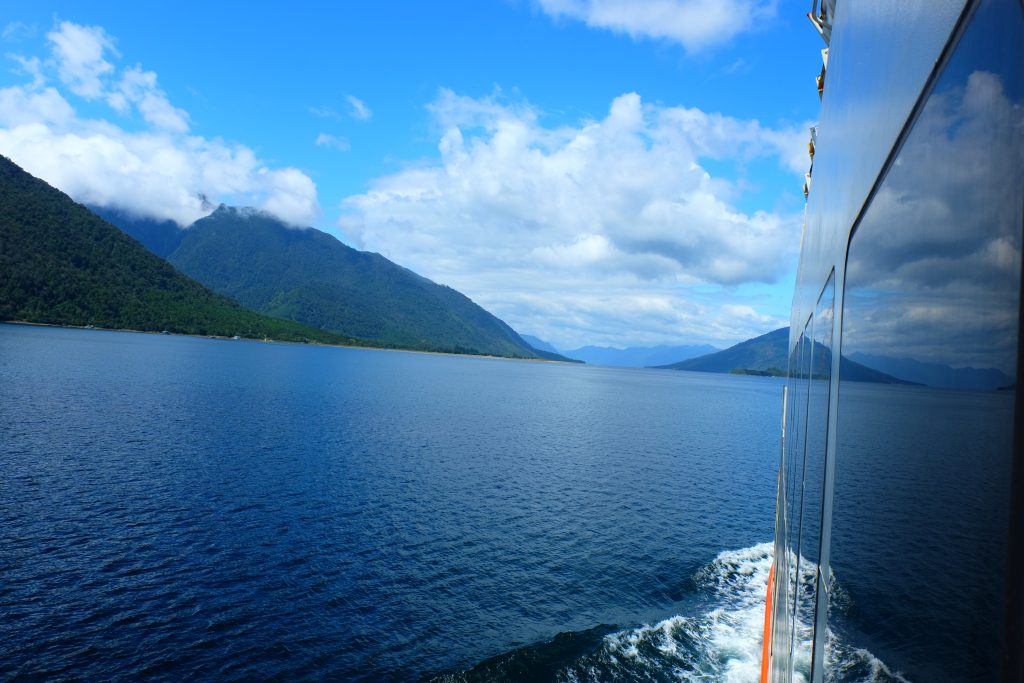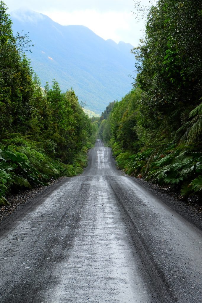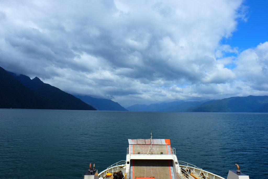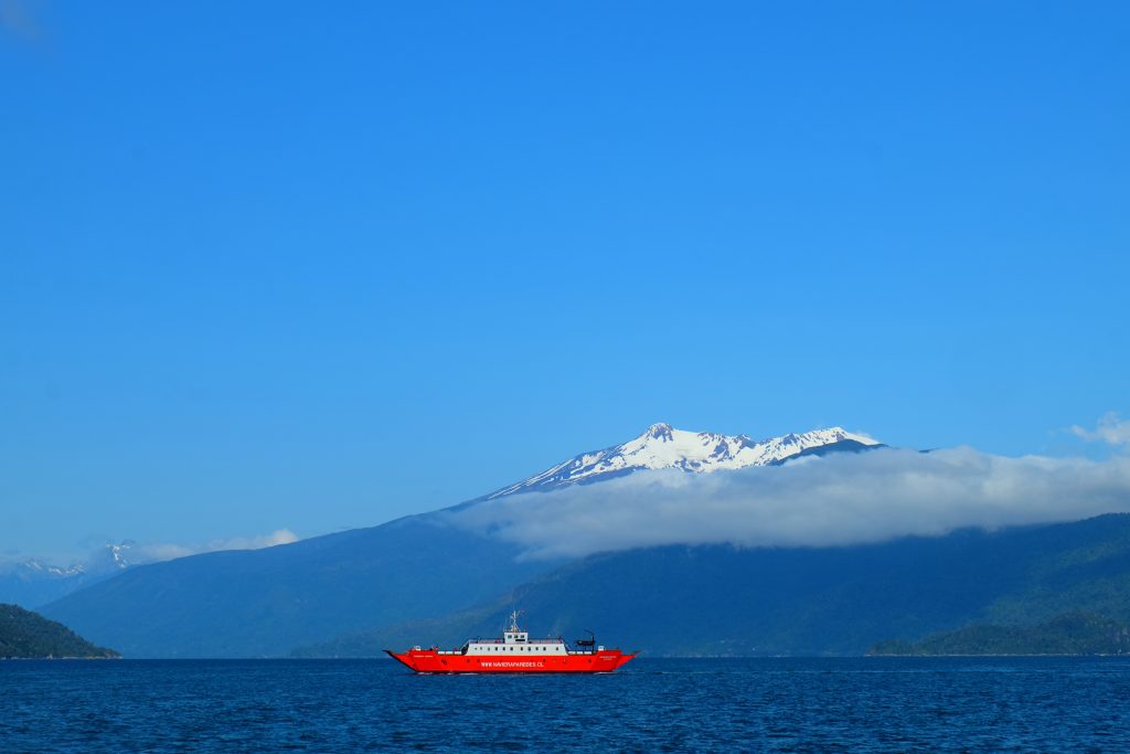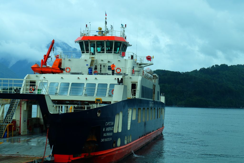 Mit der Somarco-Ferry geht`s durch den Fiordo Comau vier Stunden bis zum 3-Häuser Ort Leptepu. Dann alle Wagen ausbooten. Eine zirka 10 Kilometer lange Schotterpiste über die Halbinsel Huequi liegt vor uns. Dann ist eine zweite Fähre zur Rampe Fiordo Largo über den Reñihue-Fjord nach Caleta Gonzalo für eine halbe Stunde Überfahrt zu nehmen.