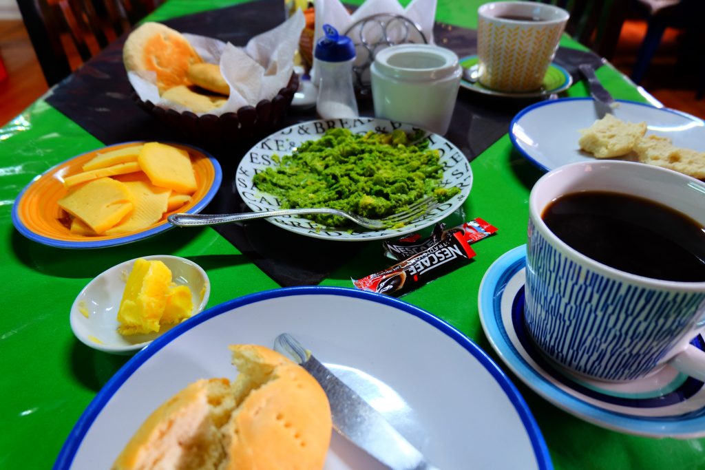 Wir frühstücken am Fähranleger: Queso und Avocado und dazu den klassischen Nescafé, der ausschließlich in Cafés und Restaurants serviert wird. Auch in den Supermercados ist es immer wieder eine Herausforderung für uns, „richtigen“ Kaffee zu finden. Gibt es welchen, ist dann noch darauf zu achten, dass er nicht mit Zucker versetzt ist.