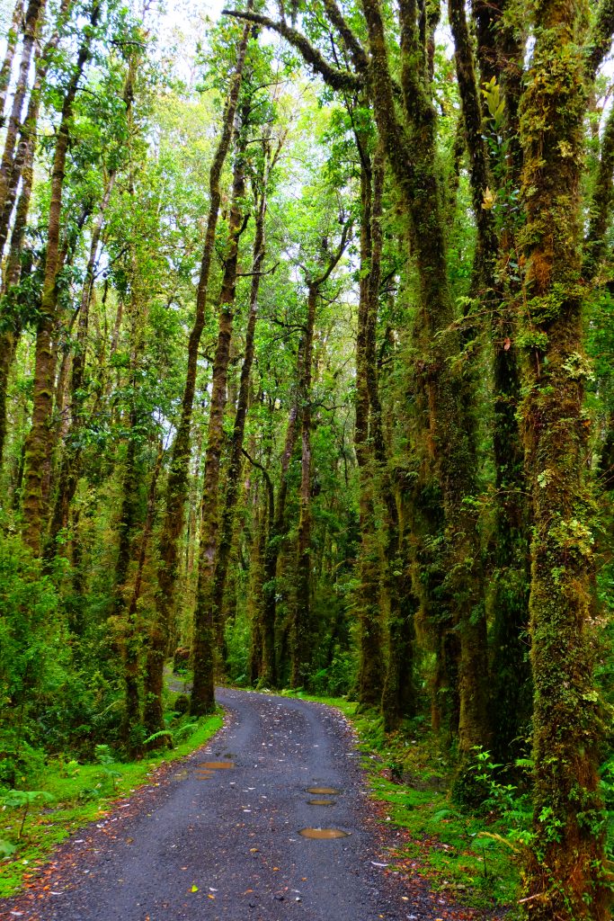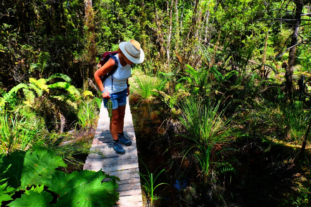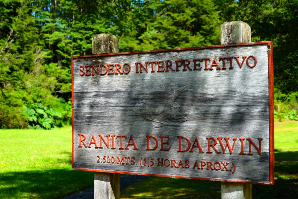 Wir unternehmen eine kleine Wanderung durch den valdivianischen kalten Regenwald. Unzählige kleine Brücken sind zu überqueren und genau so viele kleine Wasserfälle zu sehen. Farne und die sonnenschirmgroßen Nalcablätter säumen den Weg. Wir sehen sogar den eher seltenen Magellan-Specht, der sich an einem Baumstamm zu schaffen macht. Nur den Namensgeber des Weges sehen wir auch bei genauem Hinsehen nicht: den kleinen „Darwin-Frosch“.