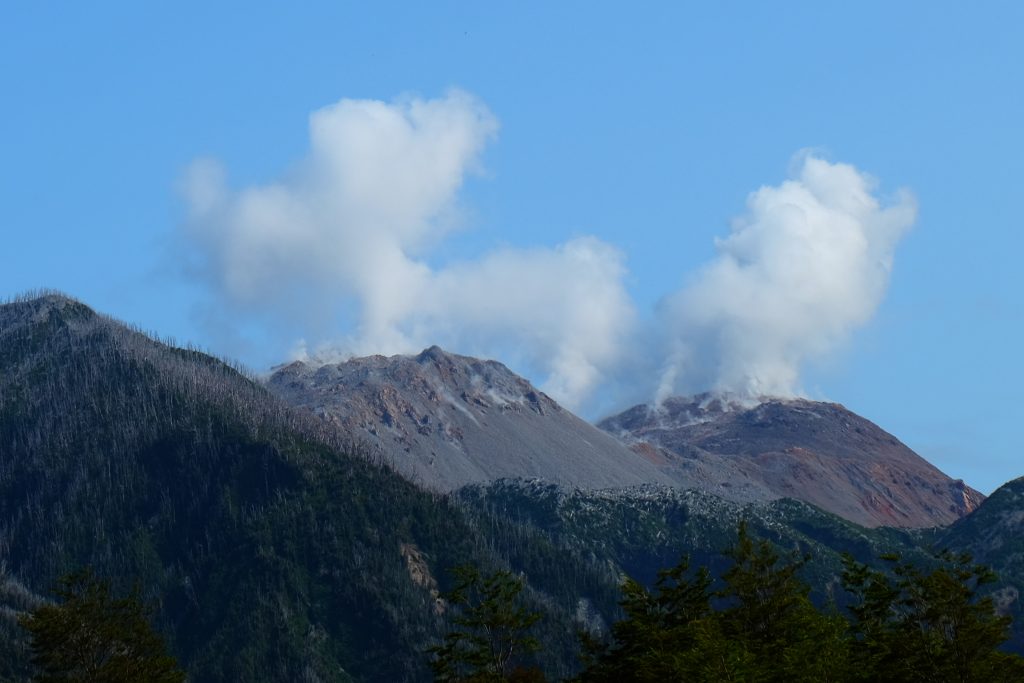 Wir erreichen unseren ersten Stellplatz im Parque Pumalín auf dem Campingplatz „El Volcan“. Der Name ist Programm, denn wir befinden uns direkt unterhalb des Chaitén. Dieser ist nach 9.000 (!) Jahren in 2008 erstmals wieder ausgebrochen und hat buchstäblich die gesamte Region und den gleichnamigen Ort in Schutt und Asche gelegt. Seitdem raucht es aus den beiden Domen.