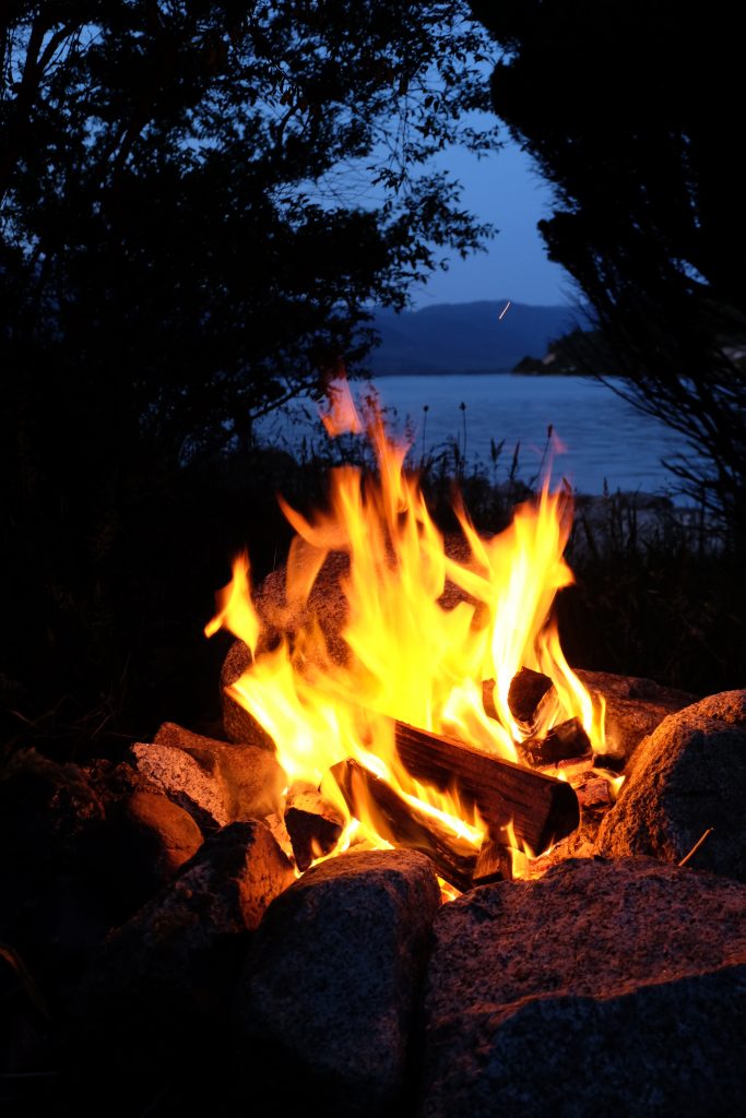 Bis nach Mitternacht sitzen wir am Lagerfeuer. Romantik pur.