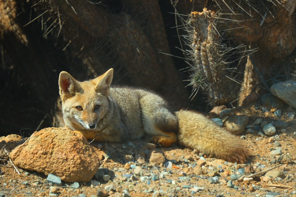Unglaubliche Weiten liegen wieder einmal vor uns. Guanacos und Esel grasen – sofern der Begriff zutreffend ist – entlang der Strecke auf dem staubig-steinigen und kakteenreichen Boden. Auch wir wirbeln mit unserem Wagen genügend Staub auf, sodass wir die Füchse (Chillas), manchmal erst im letzten Moment erkennen können. Unser Stellplatz ist in den Dünen gelegen und bietet durch Steinformationen genügend Schutz vor dem böigen Wind. Ein ganz schön dreister Chilla versucht etwas von unseren Empanadas abzubekommen. Verscheuchen hift nicht. Wir strafen ihn mit Ignoranz.
