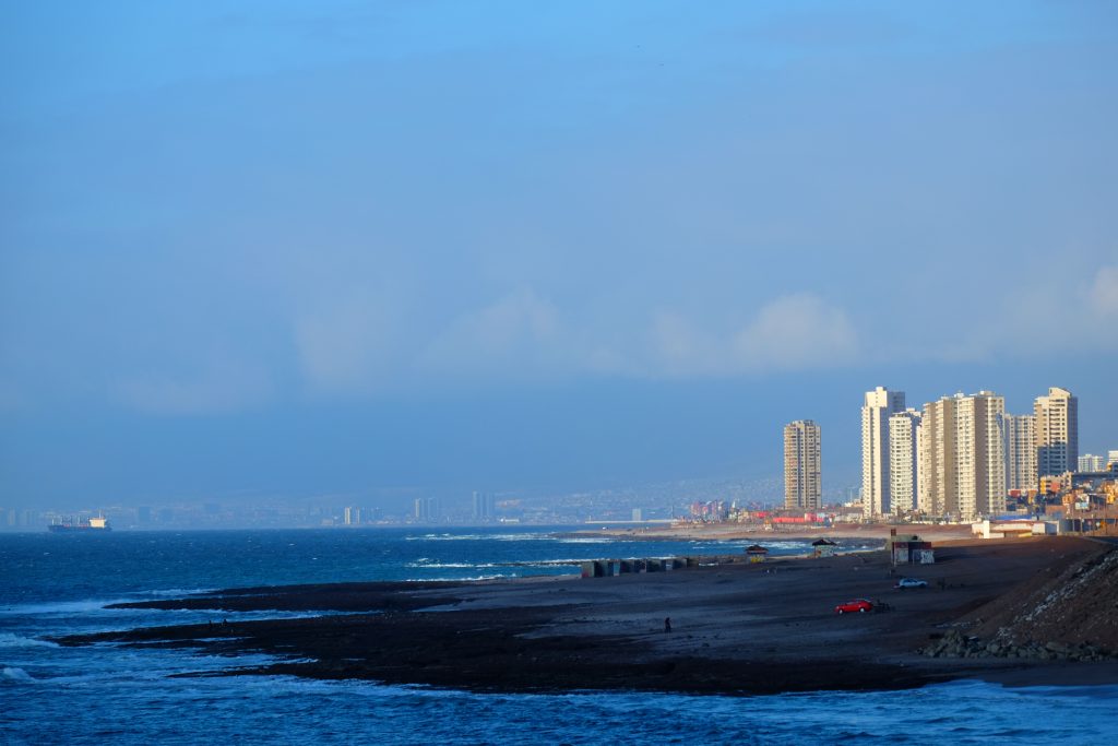 Um die Atacama zu erreichen, benötigen wir noch eine weitere Zwischenübernachtung. Wir landen direkt bei Quentin Tarantino im Vorgarten. Eine entspannte Kombination der Kultfilme „From Dust till Dawn“ und „Once Upon a Time… in Hollywood“ erwartet uns. Der Blick sowohl auf Antofagsta als auch den Kalkstein-Bogen „La Portada“ ist dafür aber sensationell.