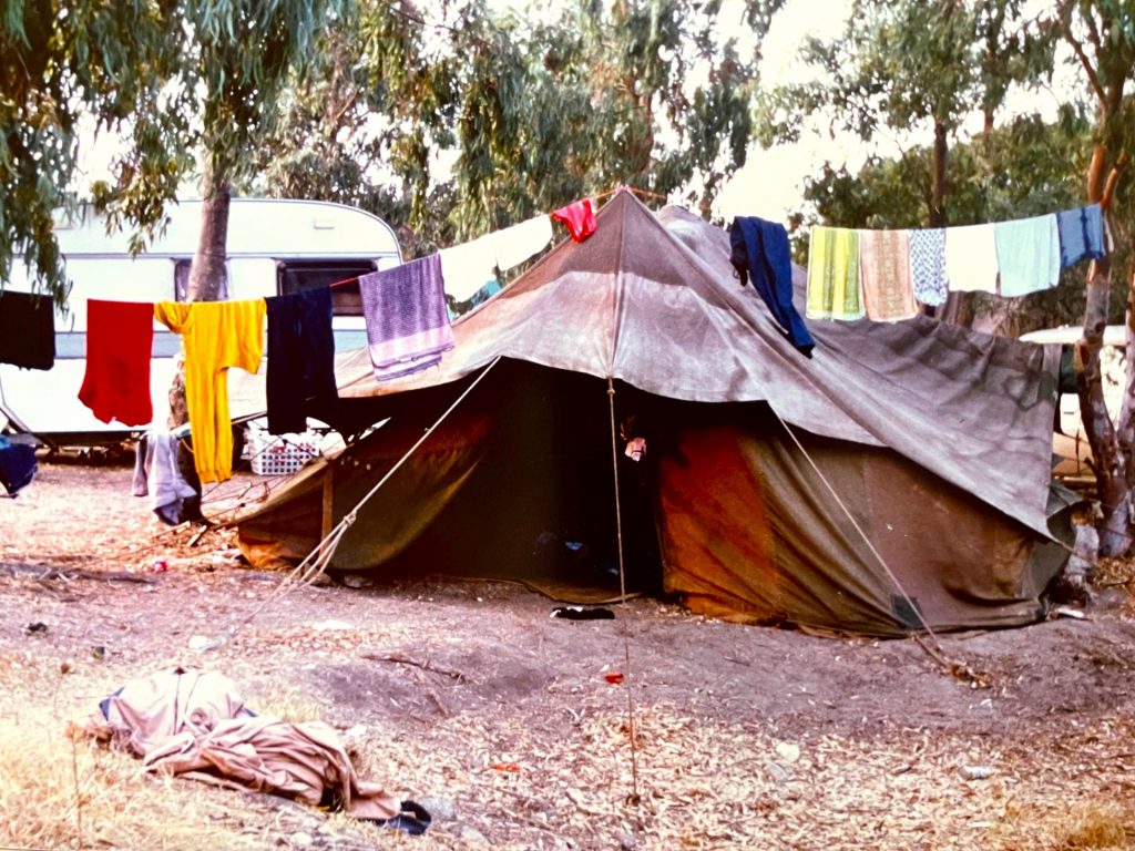 Ja, ja, in diesen Gemeinschaftszelten war es echt gemütlich … Was natürlich nicht fehlen durfte, war gute Musik. Letztendlich war es die Musikkassette „Sotto il segno dei pesci“ von Antonello Venditti, die bis zum endgültigen Bandsalat in Dauerschleife lief.