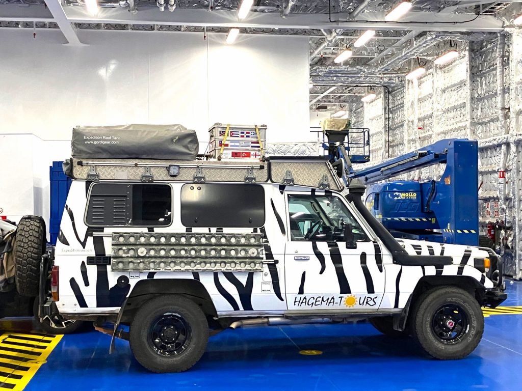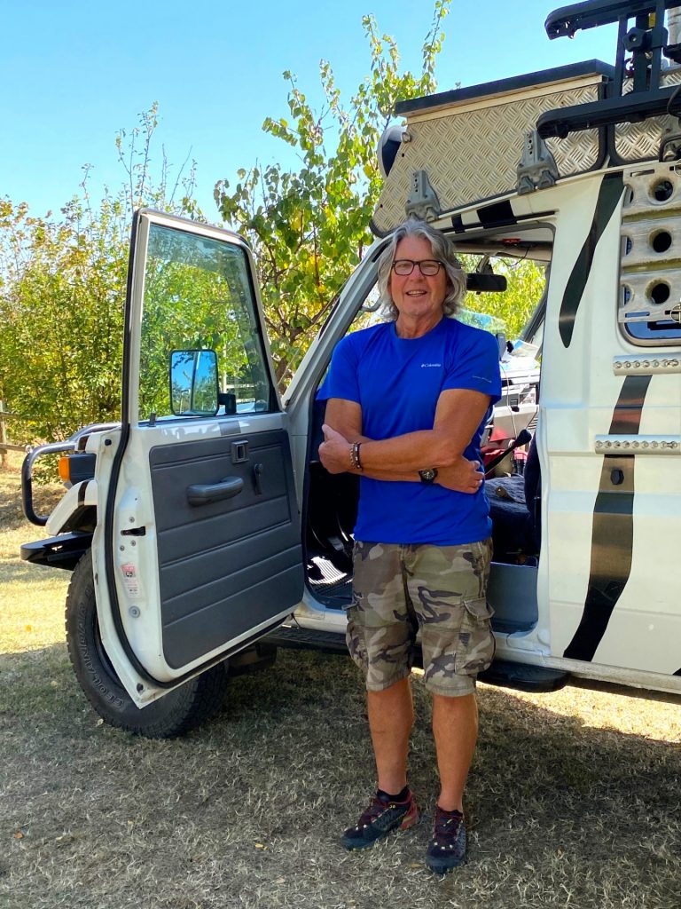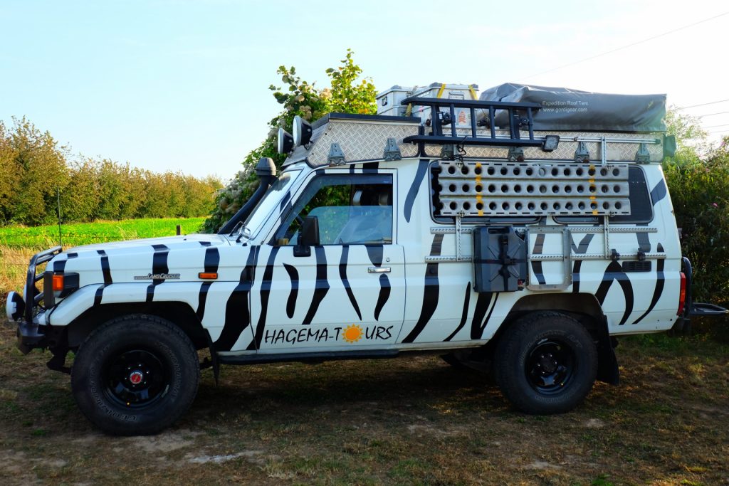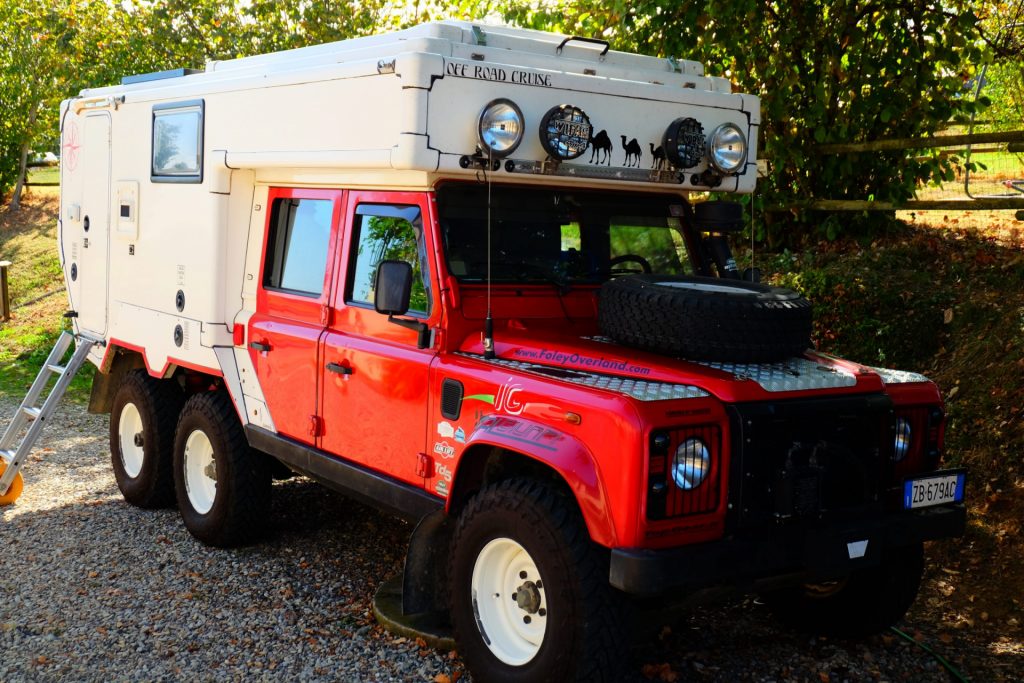 Auch der Farmer hat ein tolles Gefährt am Start. Einen als Reisemobil umgebauten Defender.