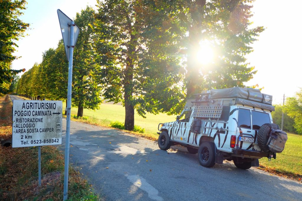 In der Nähe von Piacenza stolpern wir über die kleine Trattoria „Rosanna“. Nicht nur, weil wir dort einen „Kumpel“ von Hartmann sehen, sondern auch, weil wir Kohldampf haben, kehren wir ein.