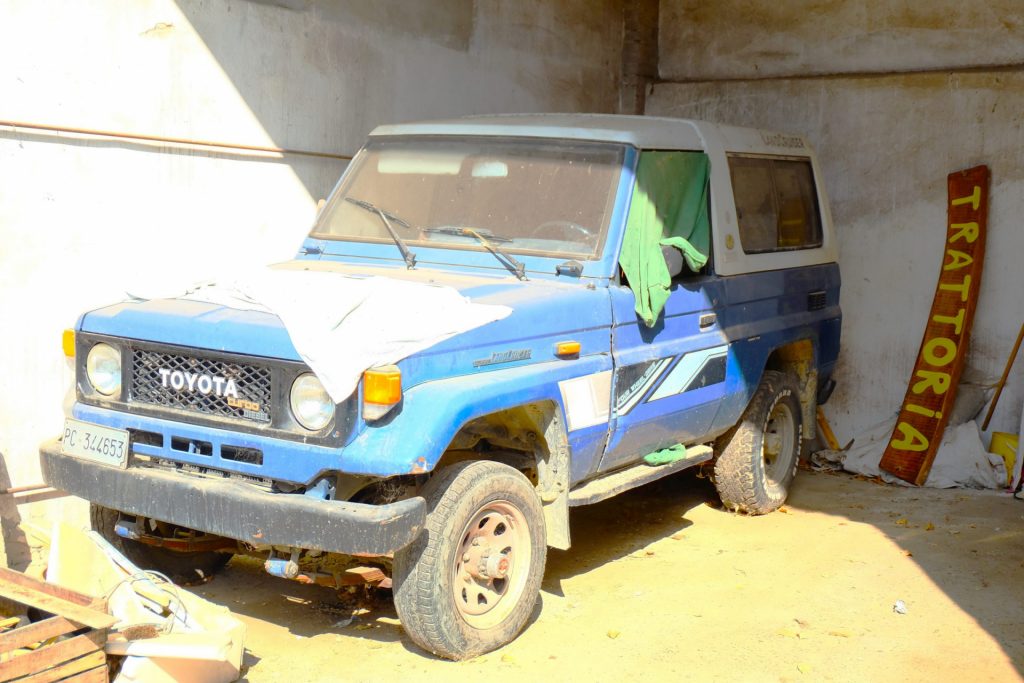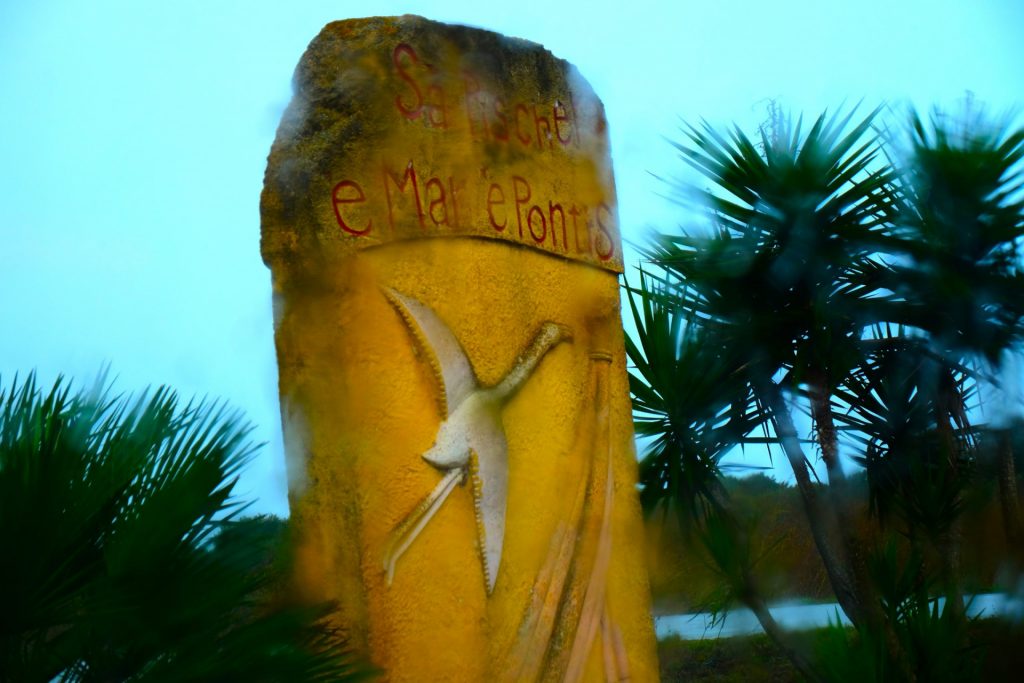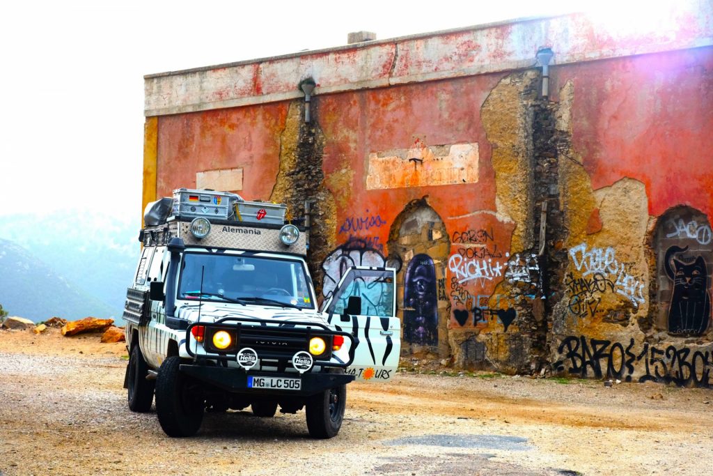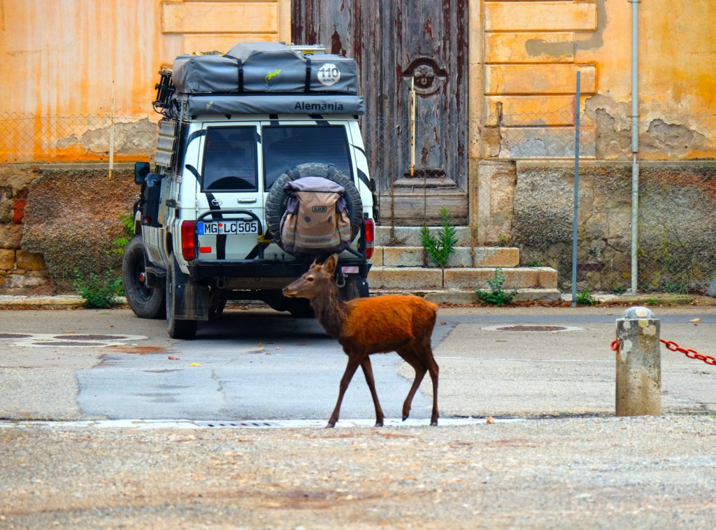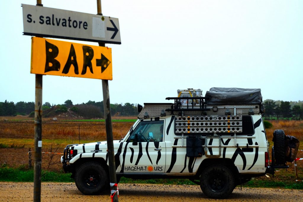 Als wir los fahren, beginnt es zu regnen. Dabei hatte das Drehbuch eigentlich trockenes, heißes und Staub aufwirbelndes Wetter vorgesehen. San Salvatore, ein Dorf in dem nur noch wenige Sarden wohnen, war einst Filmkulisse für die berühmten italienischen „Spaghetti-Western“. Mit Pesto und Tomatensoße bewaffnet, schauen wir uns hier um.