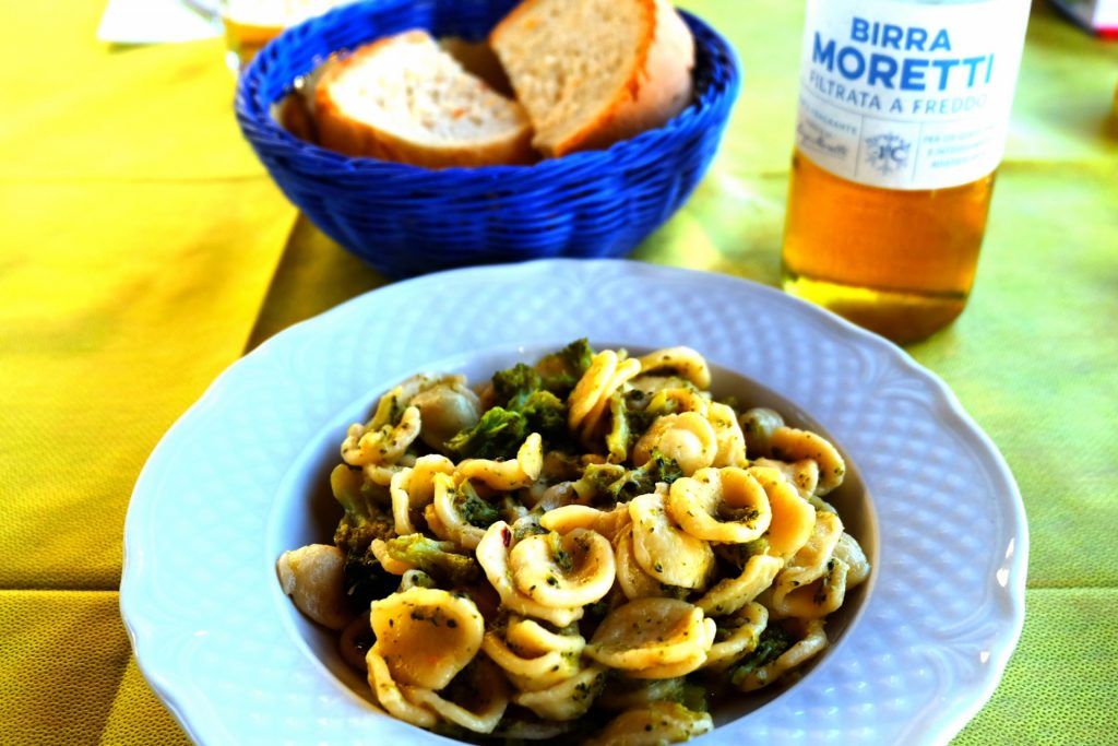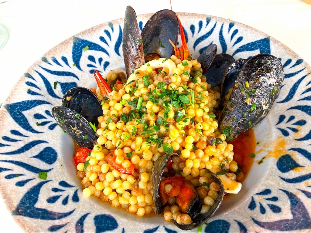 Wir erreichen den Küstenort S’Archittu, der berühmt ist für einen von Meer und Wind geformten Felsbogen. Doch bevor wir uns dorthin begeben, begeben wir uns erst einmal wegen des einsetzenden Regens ins „Ristorante Marongiu“ und genießen Insalata di Polpo, Fregola Misto Mare sowie Tagliatelle Gamberi e Cardoncelli.