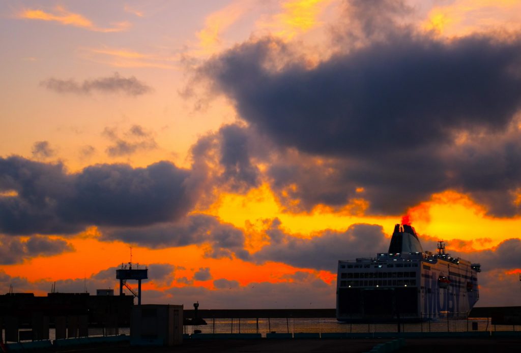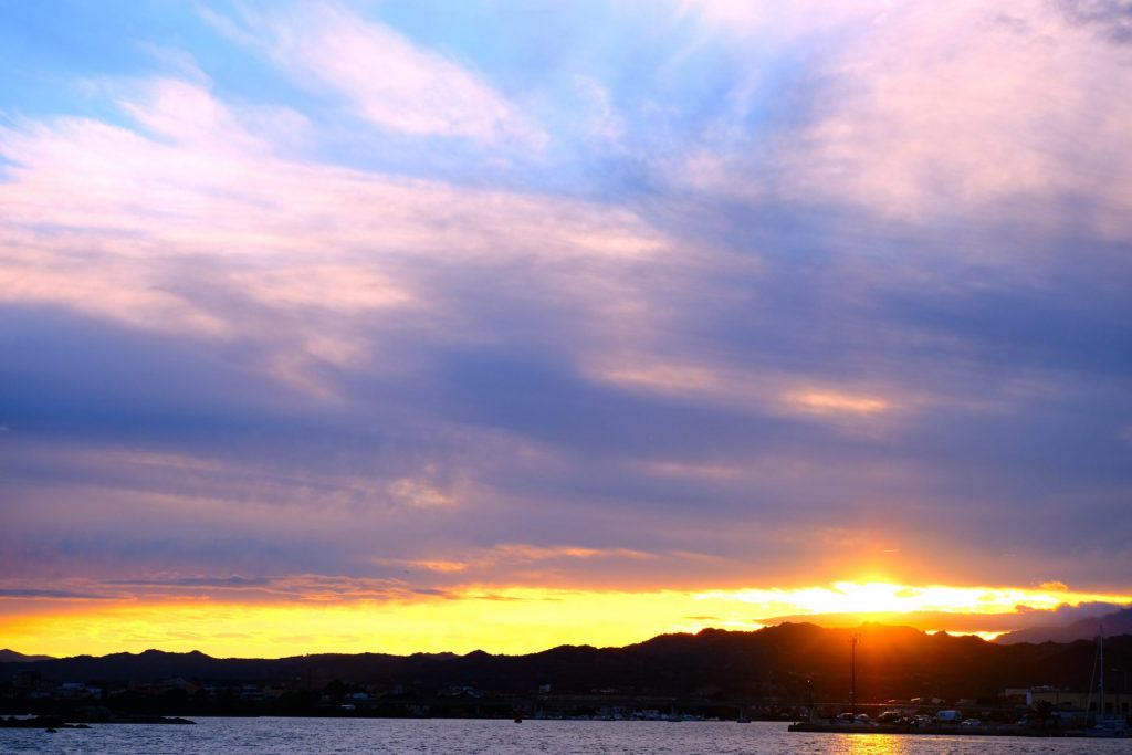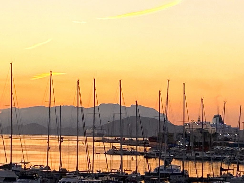 Wir sind in Olbia angekommen und erfreuen uns an diesem fantastischen Abendhimmel, bevor wir auf die Fähre fahren und die kommende Nacht auf See verbringen.