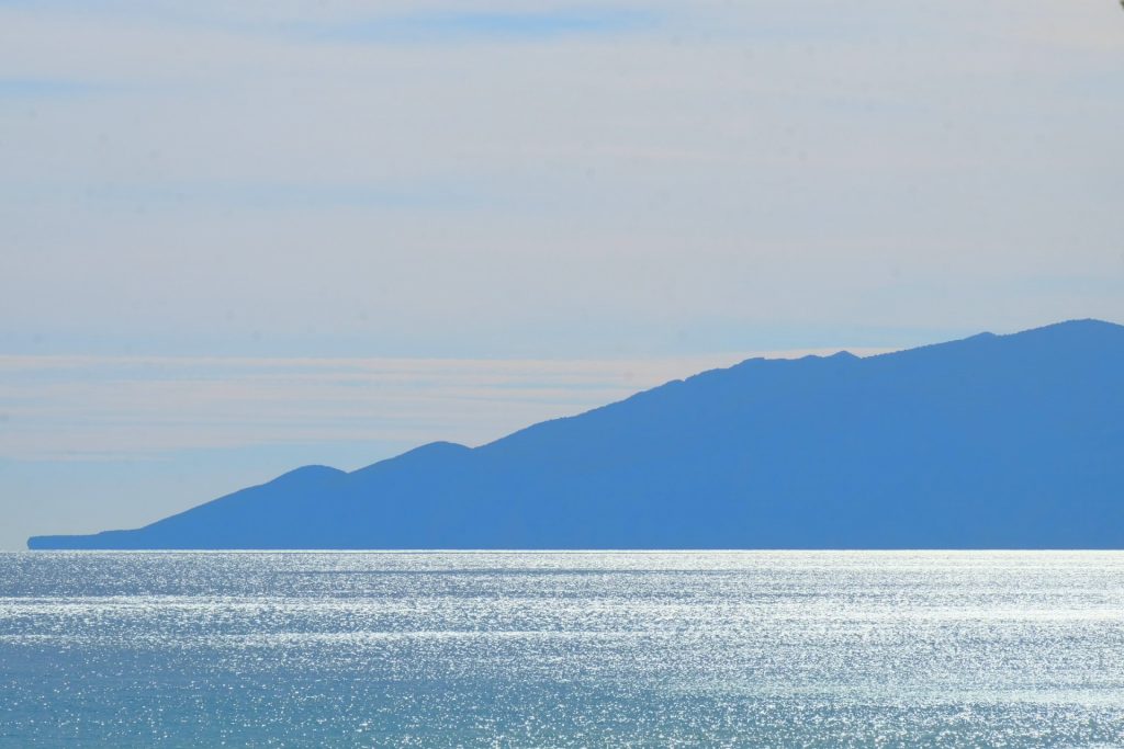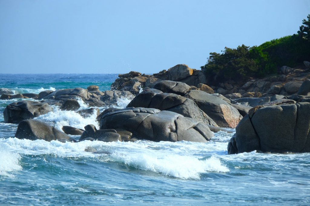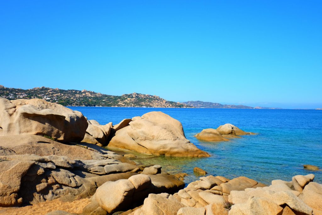 Nun fahren wir nordwärts, zuerst Richtung Santa Teresa und dann zum Capo Testa. Von hier haben wir einen freien Blick auf die 25 Kilometer entfernten leuchtenden Kalksteinfelsen von Bonifacio auf Korsika.