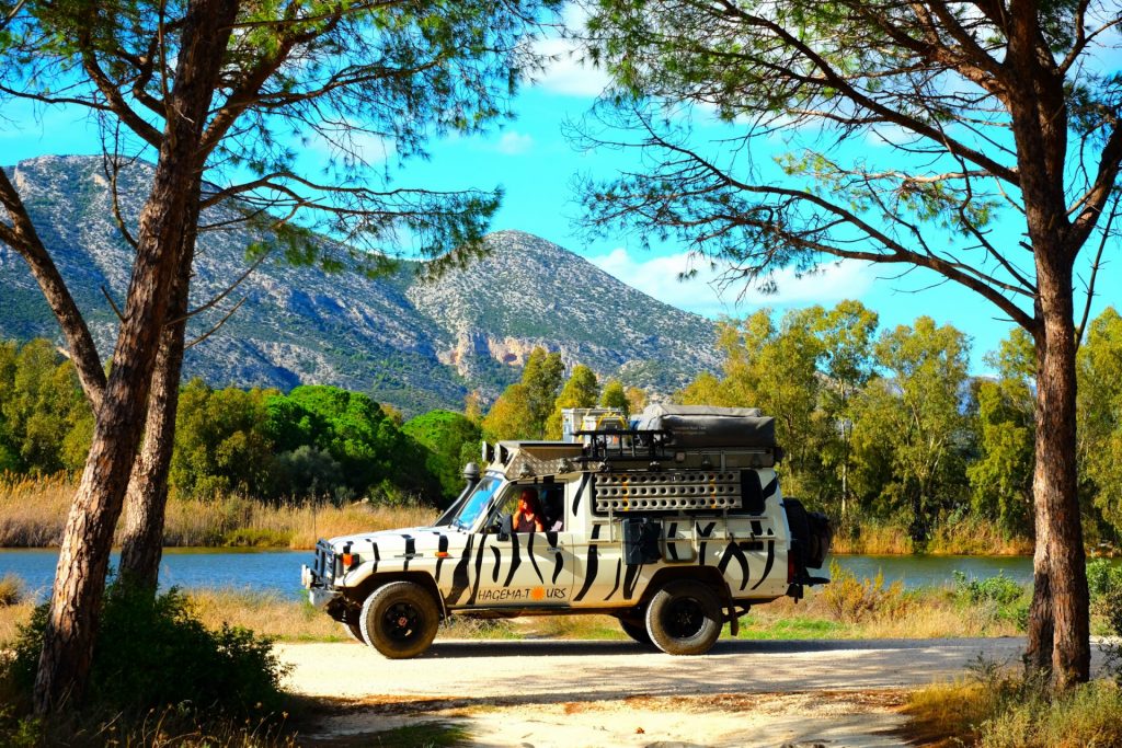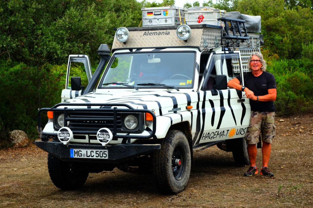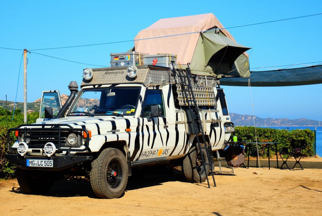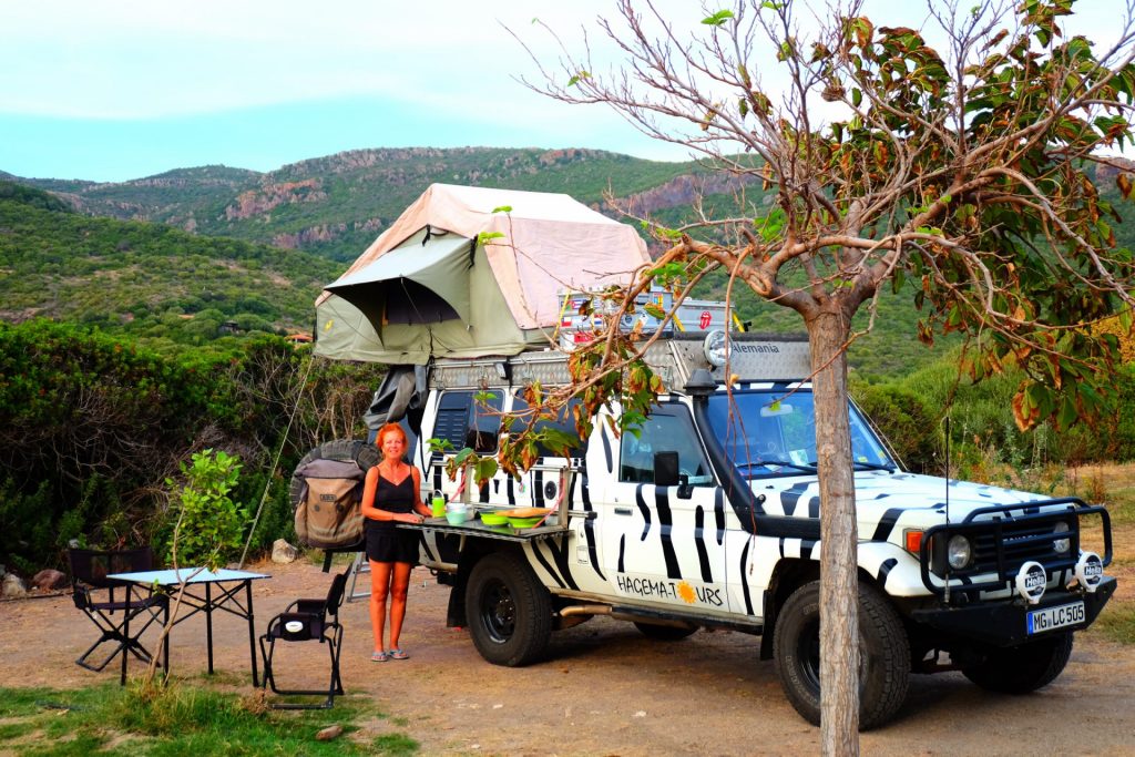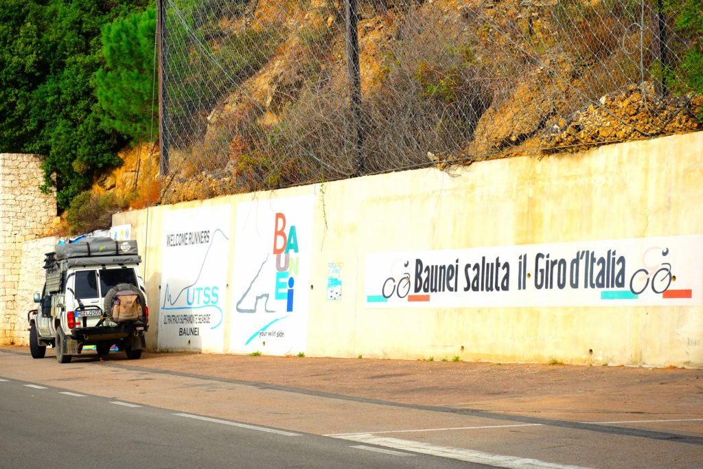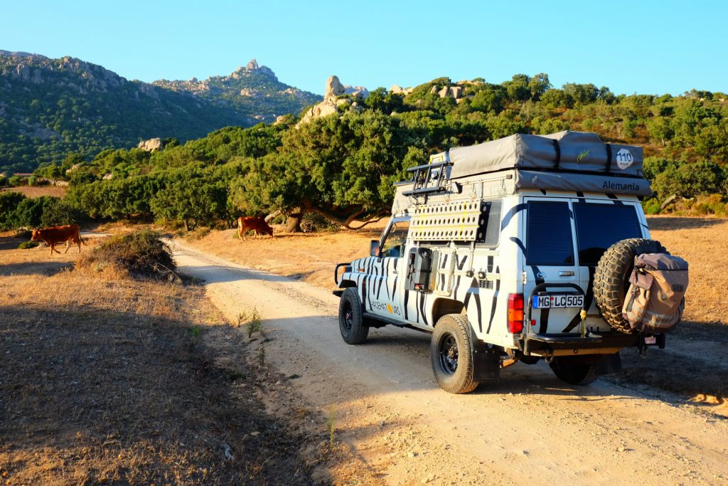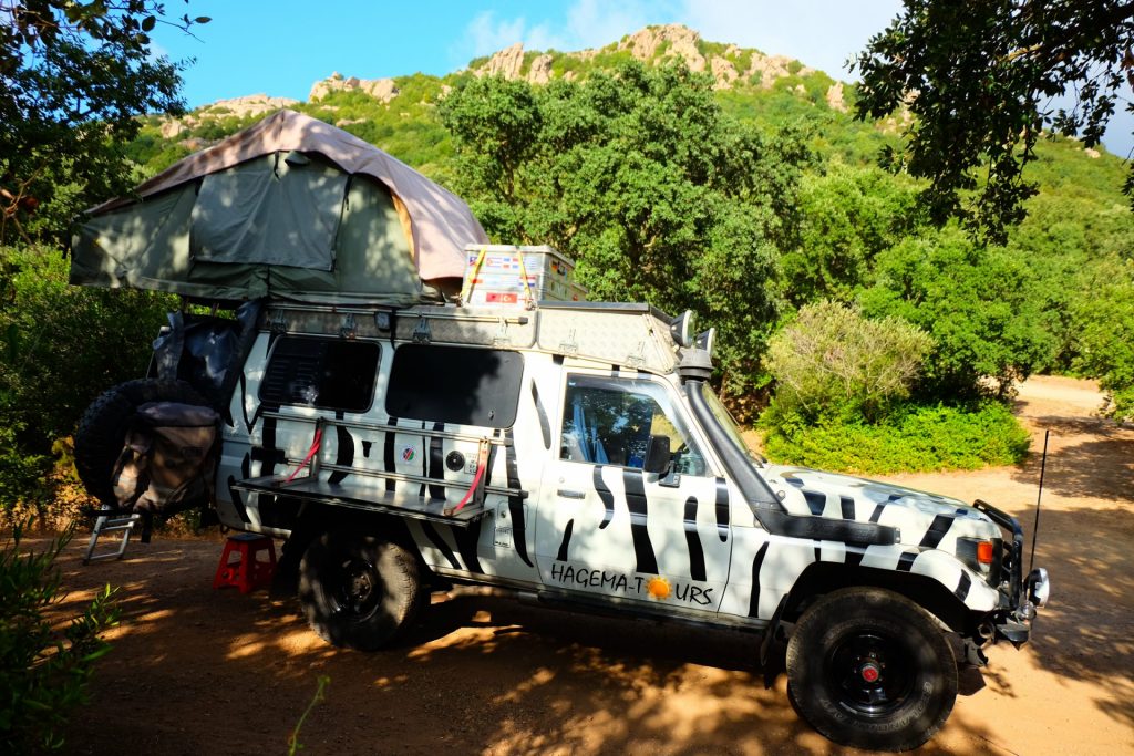 Nun müssen wir aber echt Gummi geben, damit wir unseren kommenden Campingplatz mit dem für uns echt schwierig auszusprechenden Namen „Sciopadroxiu“ vor Einbruch der Dunkelheit erreichen. Die Anfahrt ist etwas abenteuerlich, letztendlich aber kein Problem für Hartmann. Zu unserer Freude regnet es und der Boden ist ordentlich durchweicht.