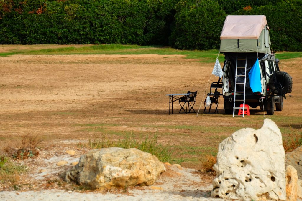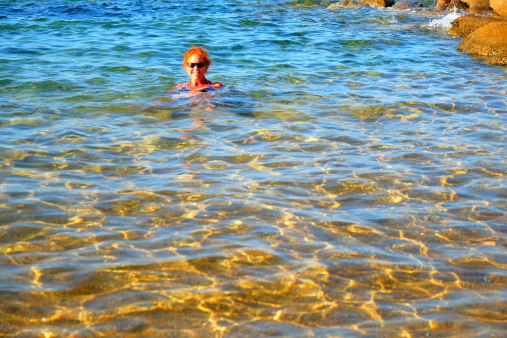 Bevor wir das Dachzelt aufbauen, ist eine Abkühlung im glasklaren Wasser genau das Richtige.